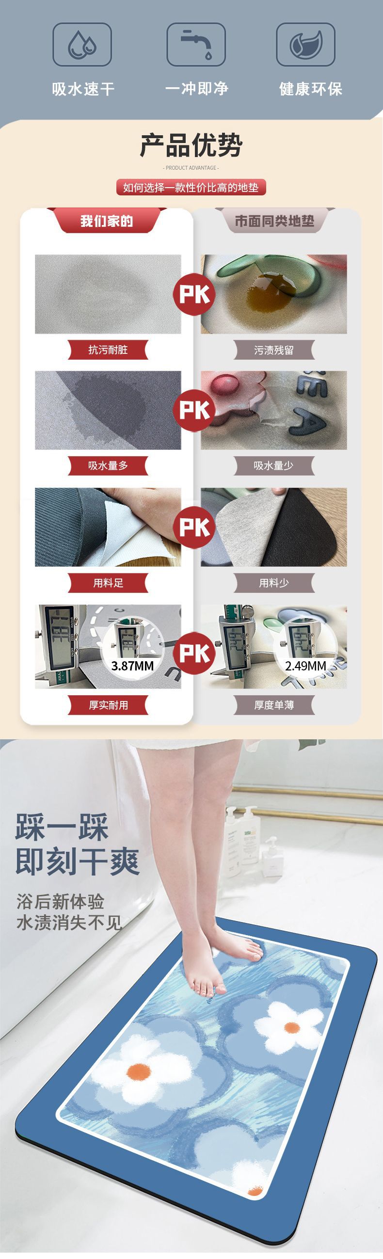 공장 도매 크로스 보더 욕실 규조 진흙 흡수성 속건 카펫 주방 내마모성 미끄럼 방지 매트스토어 가기