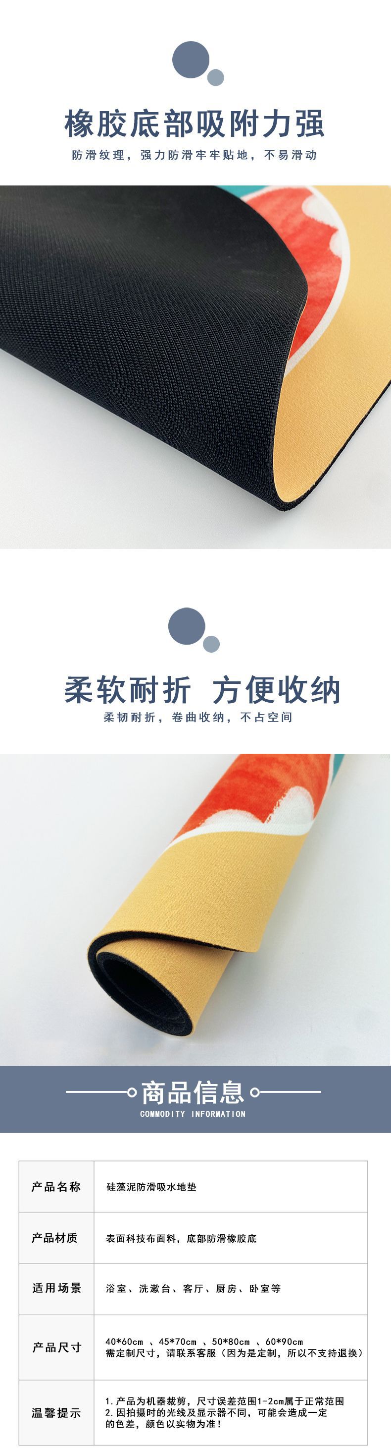 공장 도매 크로스 보더 욕실 규조 진흙 흡수성 속건 카펫 주방 내마모성 미끄럼 방지 매트