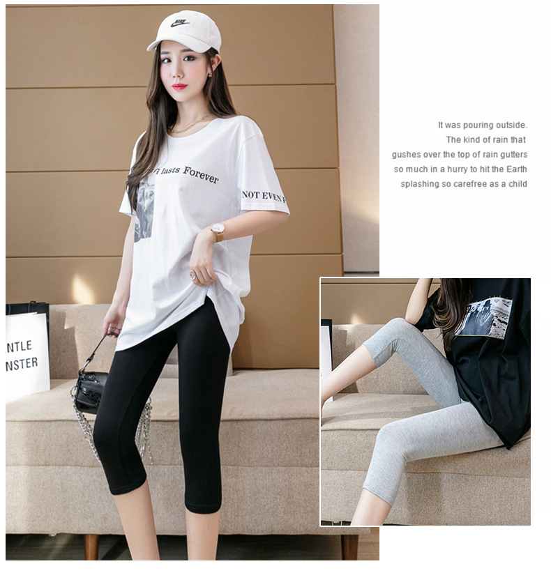 모달 레깅스 여성용 카프리 바지 여름 얇은 타이트 플러스 사이즈 겉옷 안티 러닝 반바지스토어 가기