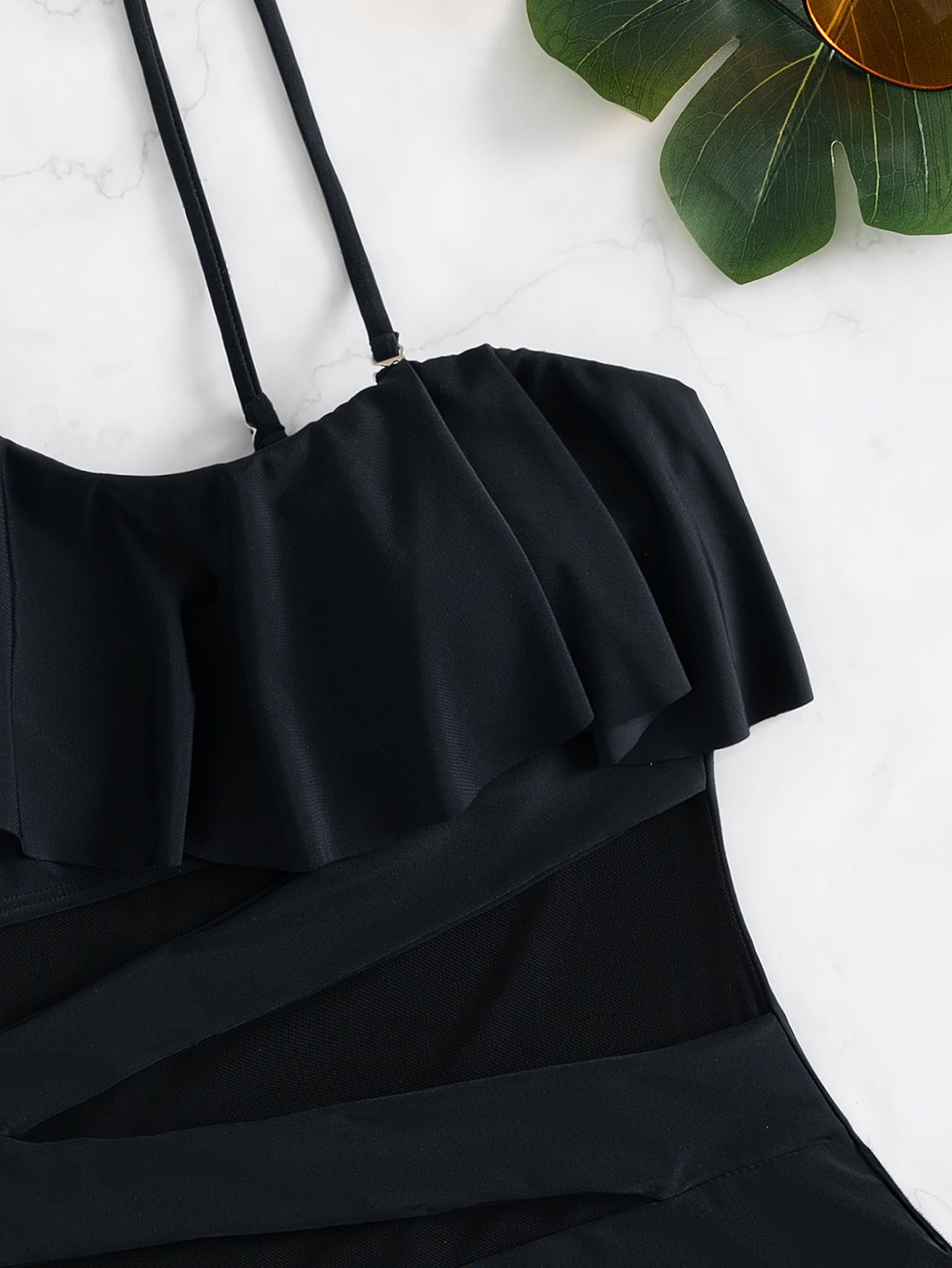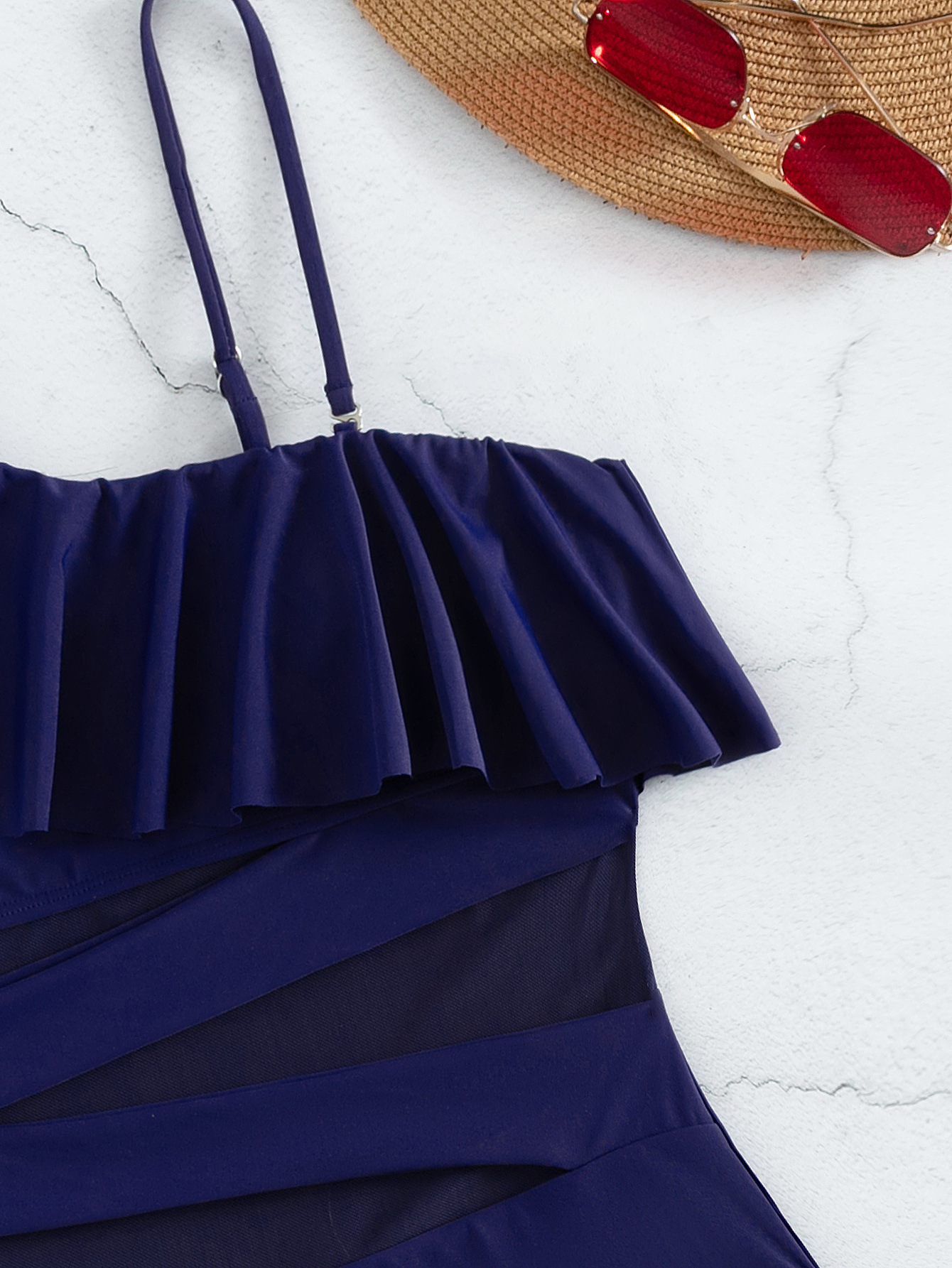 2025 새로운 멀티 컬러 귀 모양의 원 숄더 메쉬 중공 섹시한 원피스 수영복 여성 유럽과 미국의 대외 무역 비키니스토어 가기