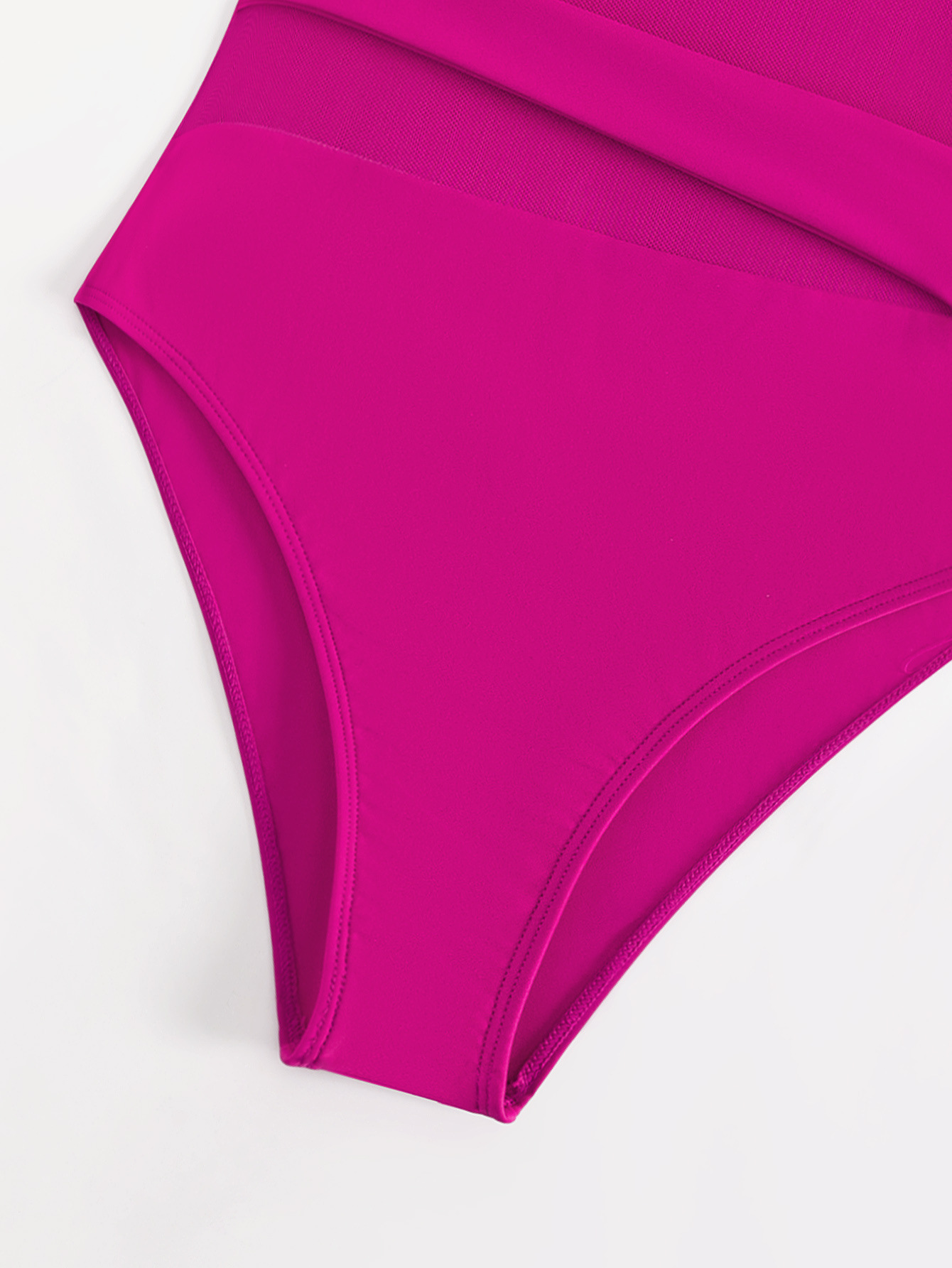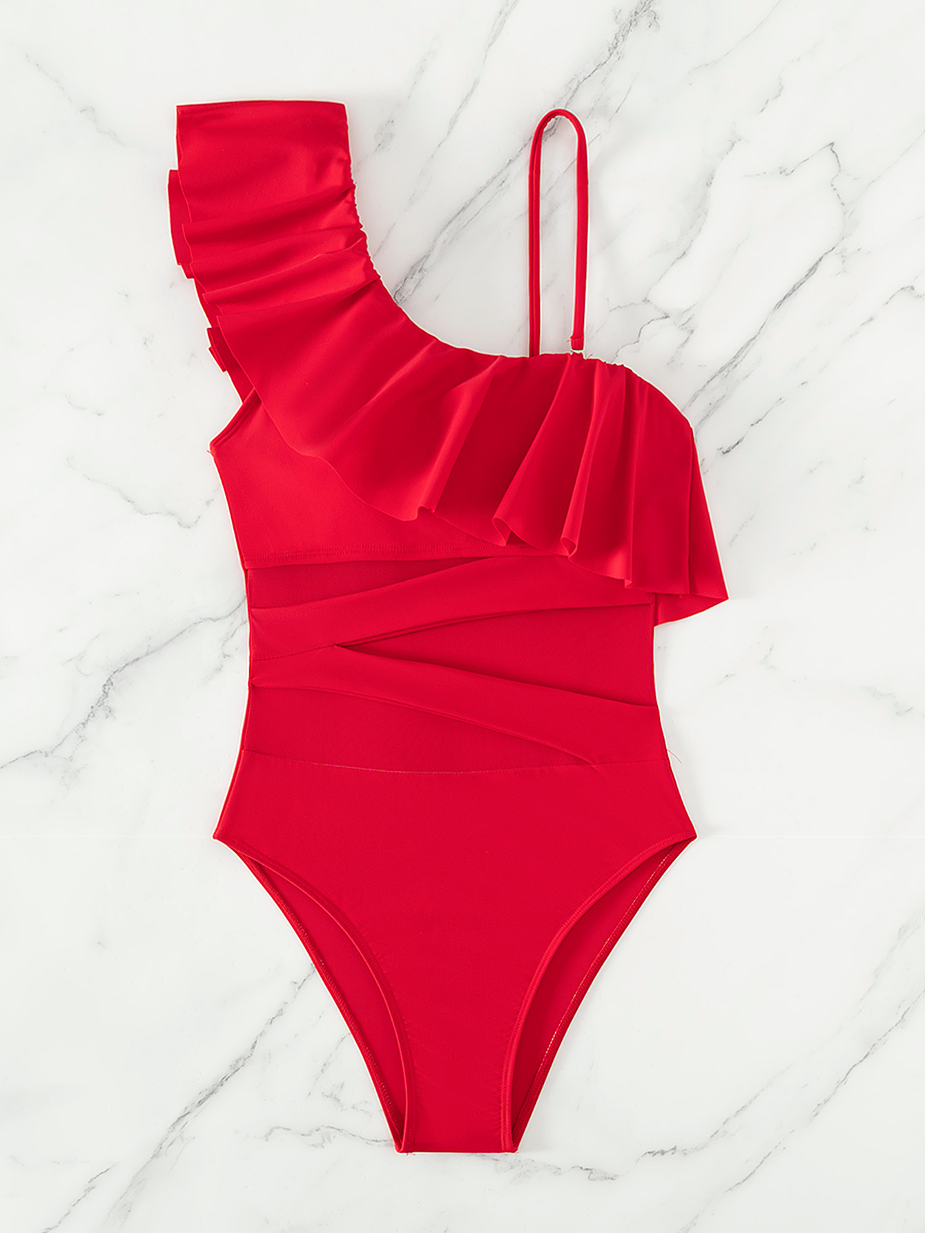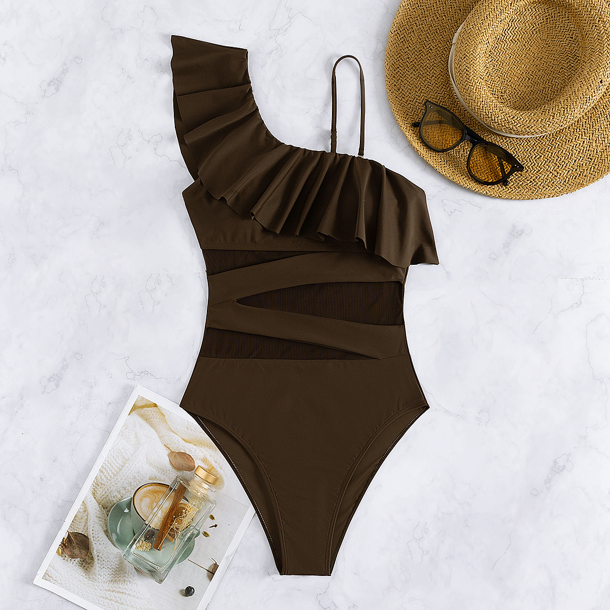 2025 새로운 멀티 컬러 귀 모양의 원 숄더 메쉬 중공 섹시한 원피스 수영복 여성 유럽과 미국의 대외 무역 비키니
