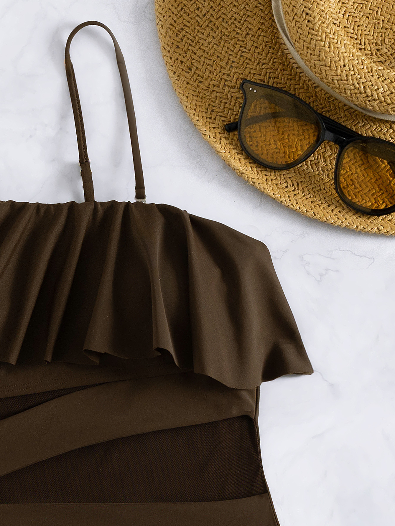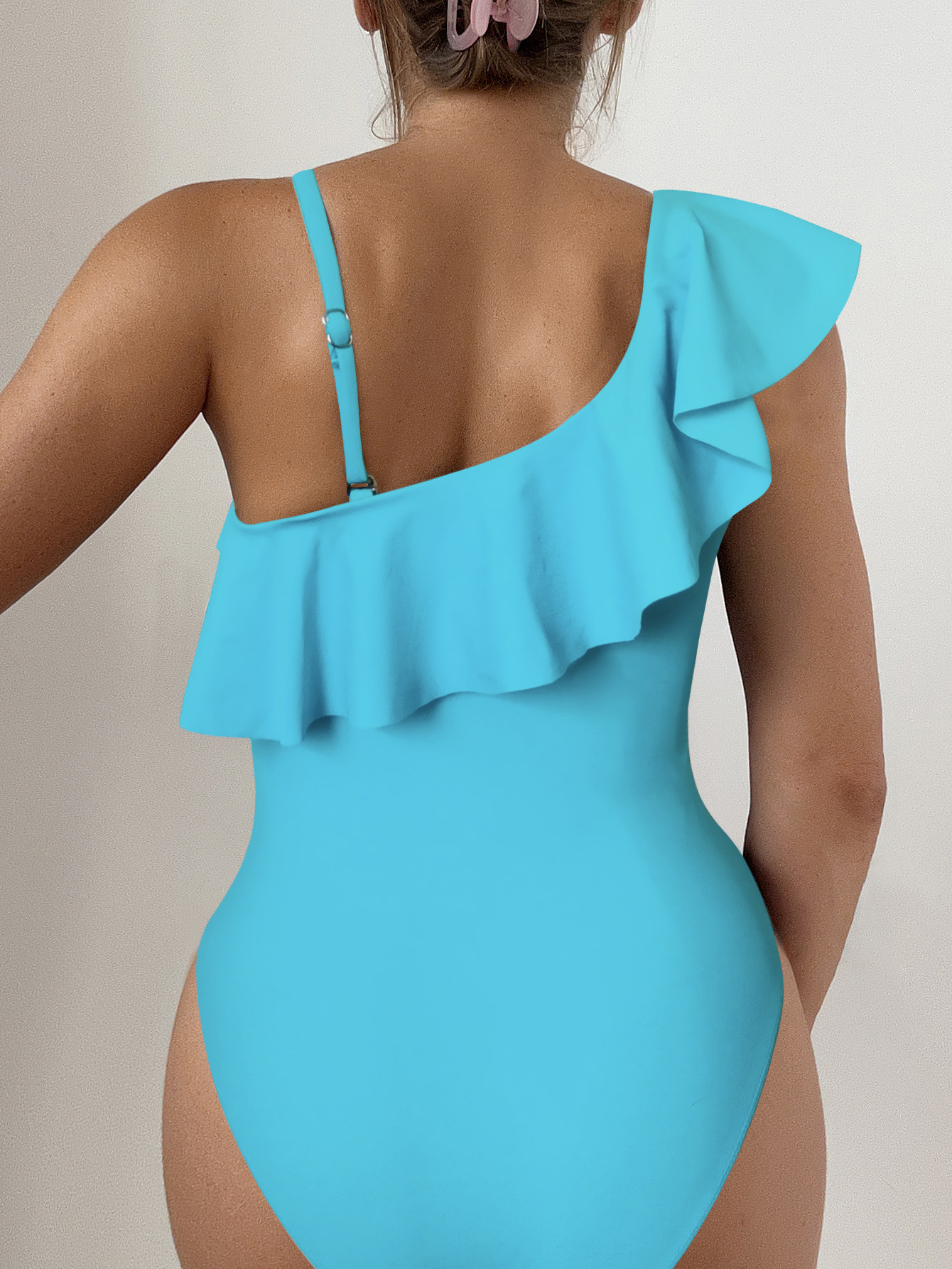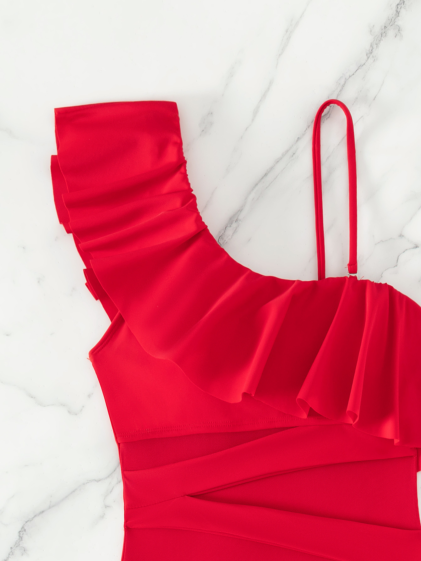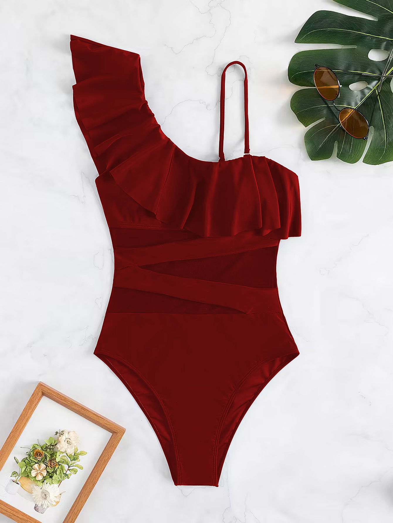 2025 새로운 멀티 컬러 귀 모양의 원 숄더 메쉬 중공 섹시한 원피스 수영복 여성 유럽과 미국의 대외 무역 비키니