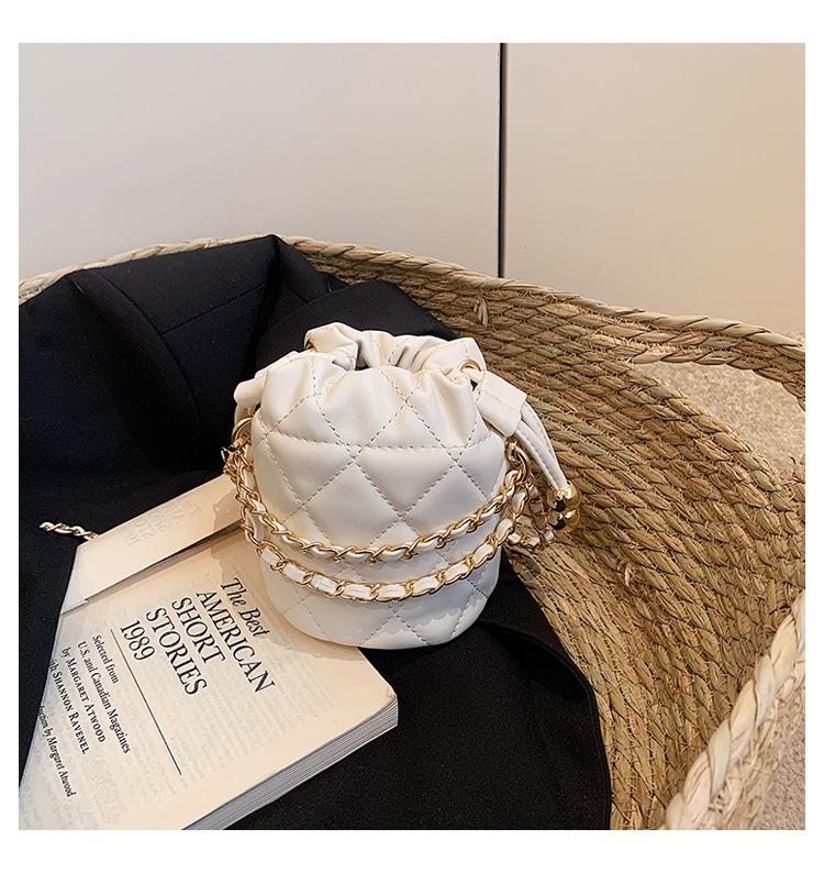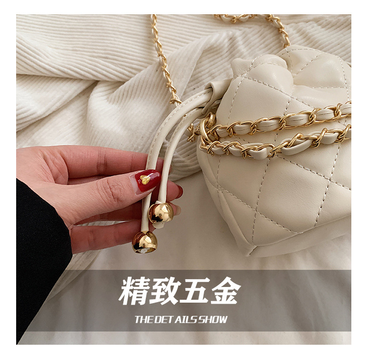 프랑스 드로스트링 버킷 백 2023 새로운 패션 모든 매치 다이아몬드 격자 무늬 체인 백 인터넷 인기 캐주얼 숄더 크로스 바디 백