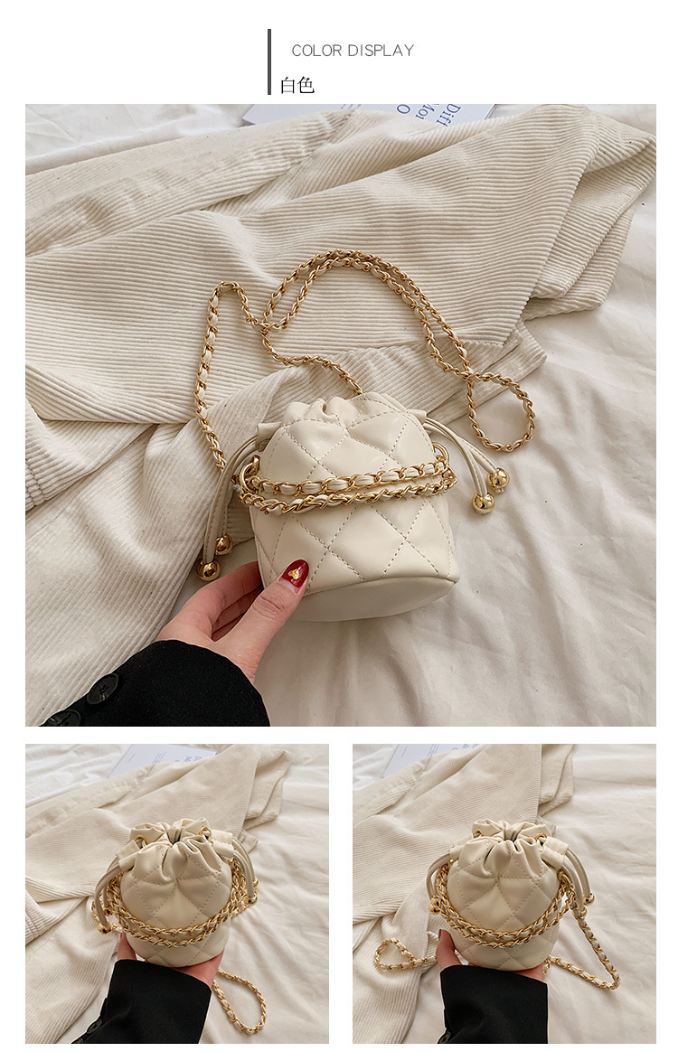 프랑스 드로스트링 버킷 백 2023 새로운 패션 모든 매치 다이아몬드 격자 무늬 체인 백 인터넷 인기 캐주얼 숄더 크로스 바디 백스토어 가기