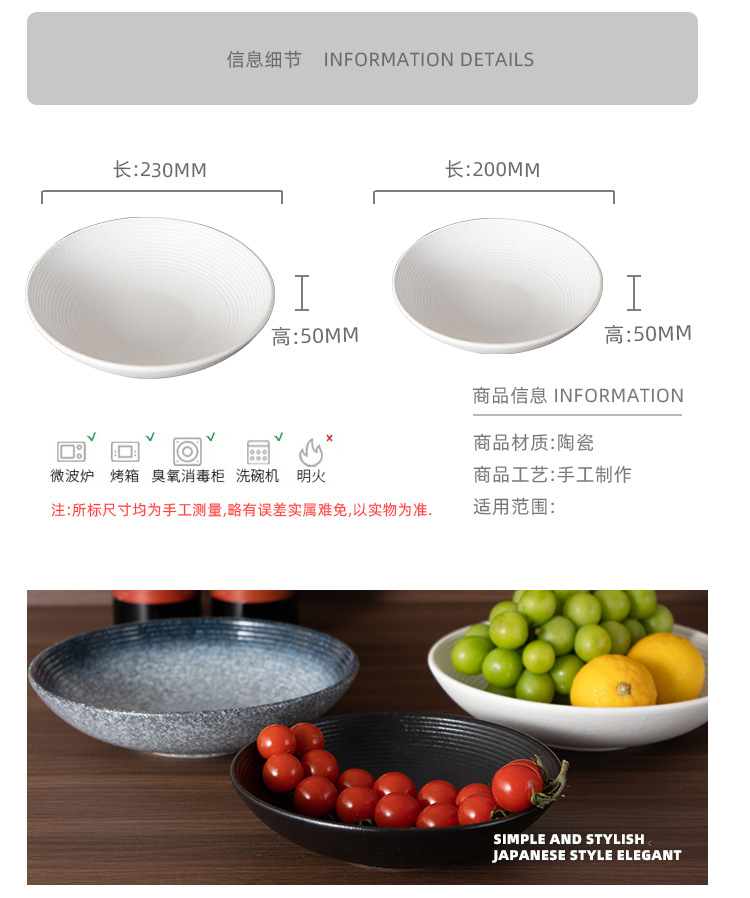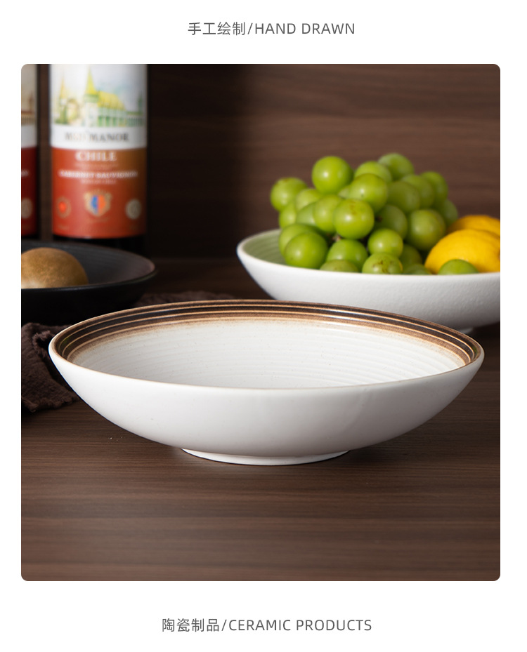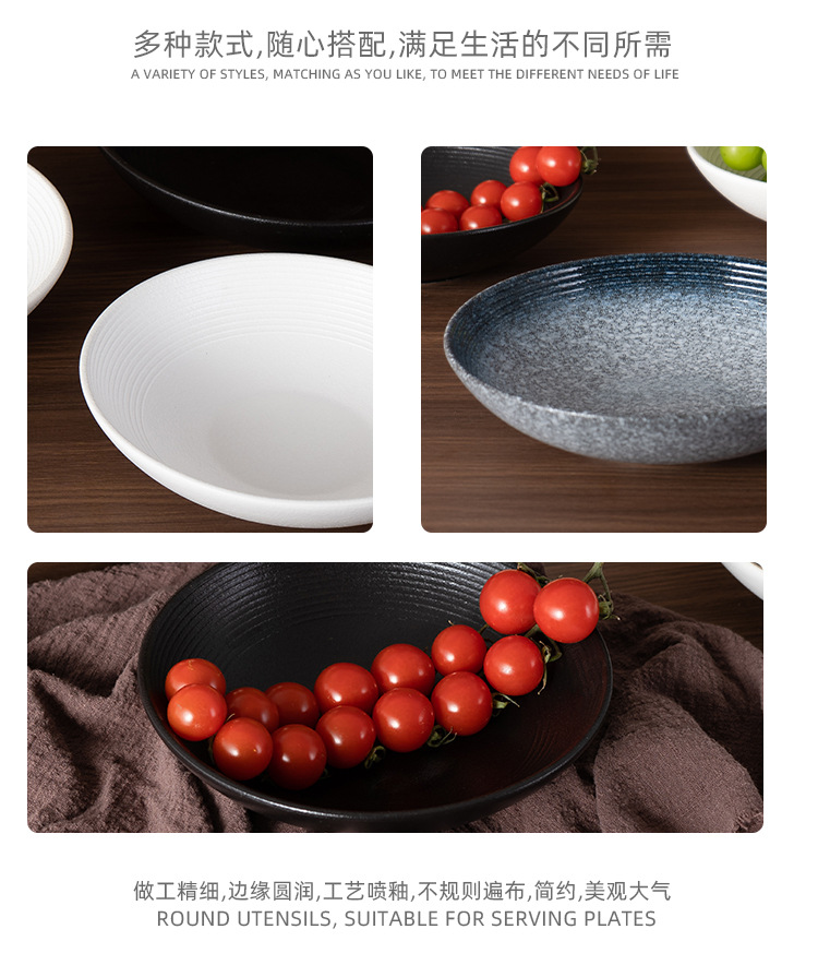 가벼운 고급 일본식 세라믹 라운드 얕은 그릇 깊은 접시 서양 레스토랑 수프 그릇 살라 그릇 서양 음식 접시 가정 레스토랑 디너 플레이트