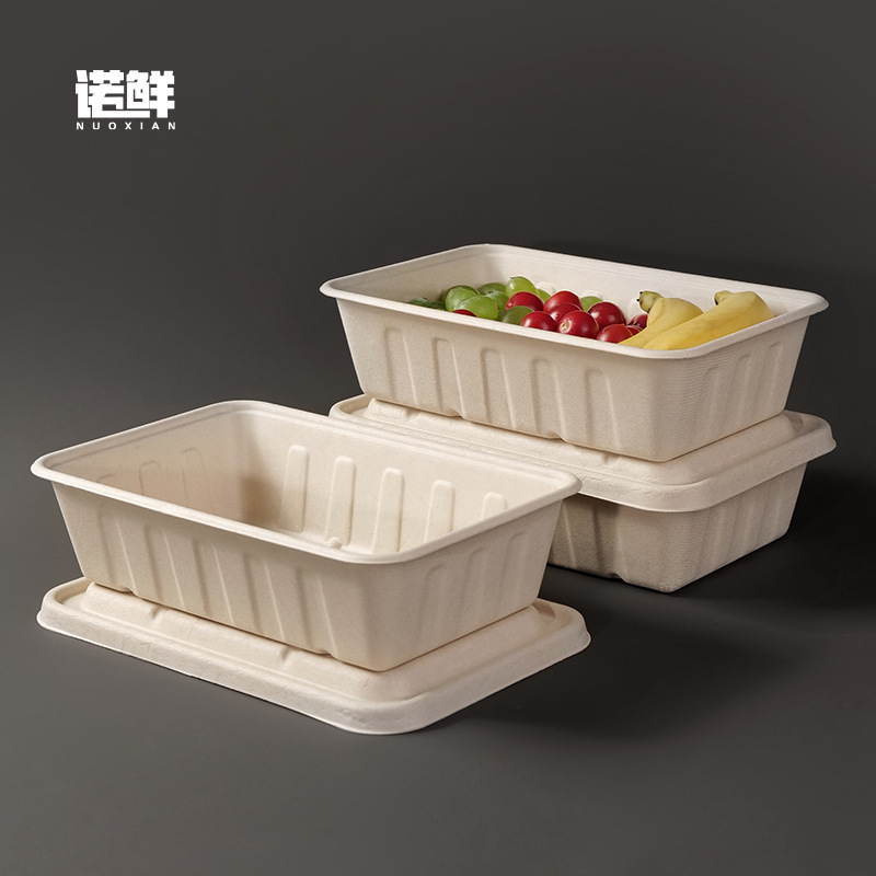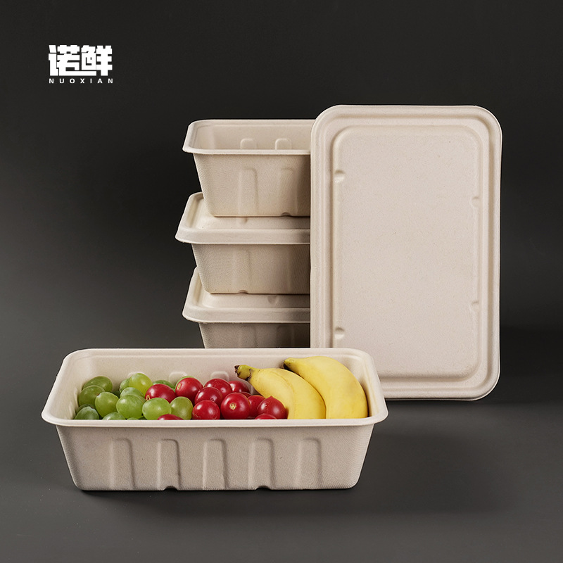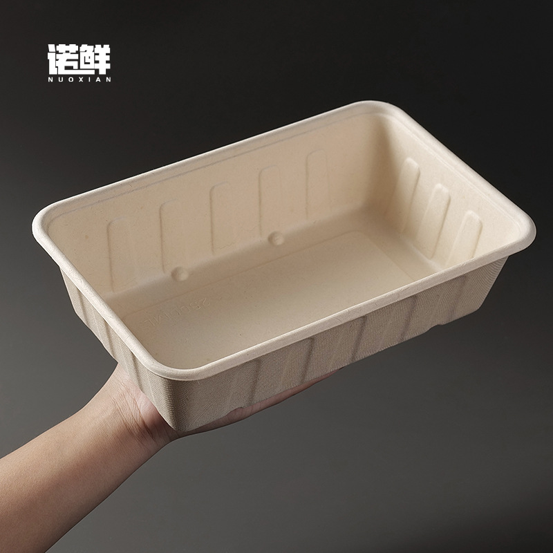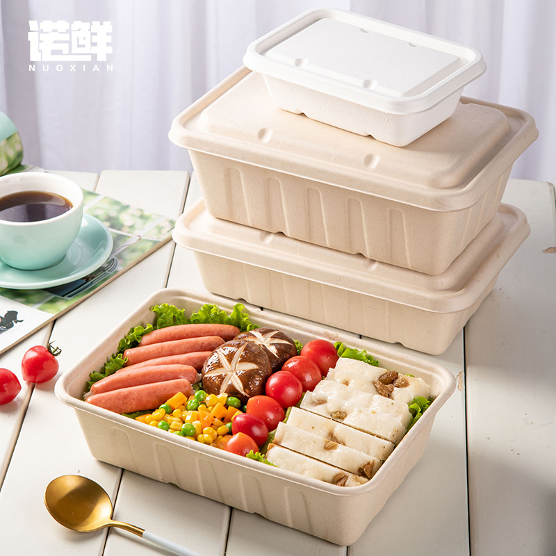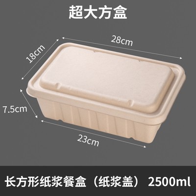 2500ml 대용량 직사각형 일회용 펄프 도시락 포장 상자 테이크 아웃 상자 분해성 가벼운 음식 샐러드 상자