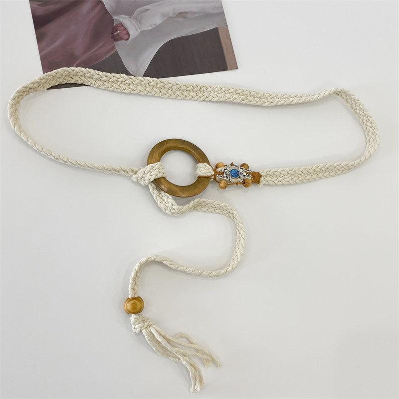 여성용 심플 올 매치 얇은 벨트 매듭 로프 짠 장식 스커트 테이프 여성용 매듭 베이지 벨트스토어 가기