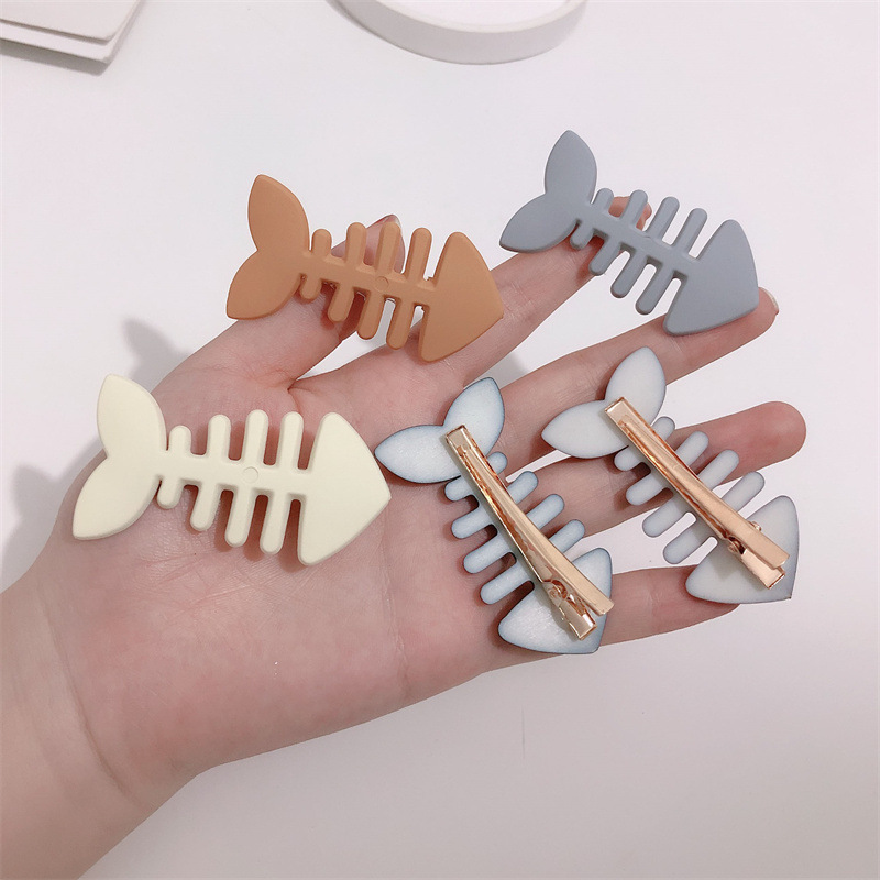 새로운 일본과 한국 스타일 간단한 사탕 색 물고기 뼈 머리핀 귀여운 재미 사이드 프론트 프린지 머리핀 머리핀 머리핀 여성용 모자스토어 가기