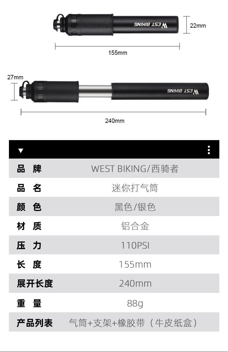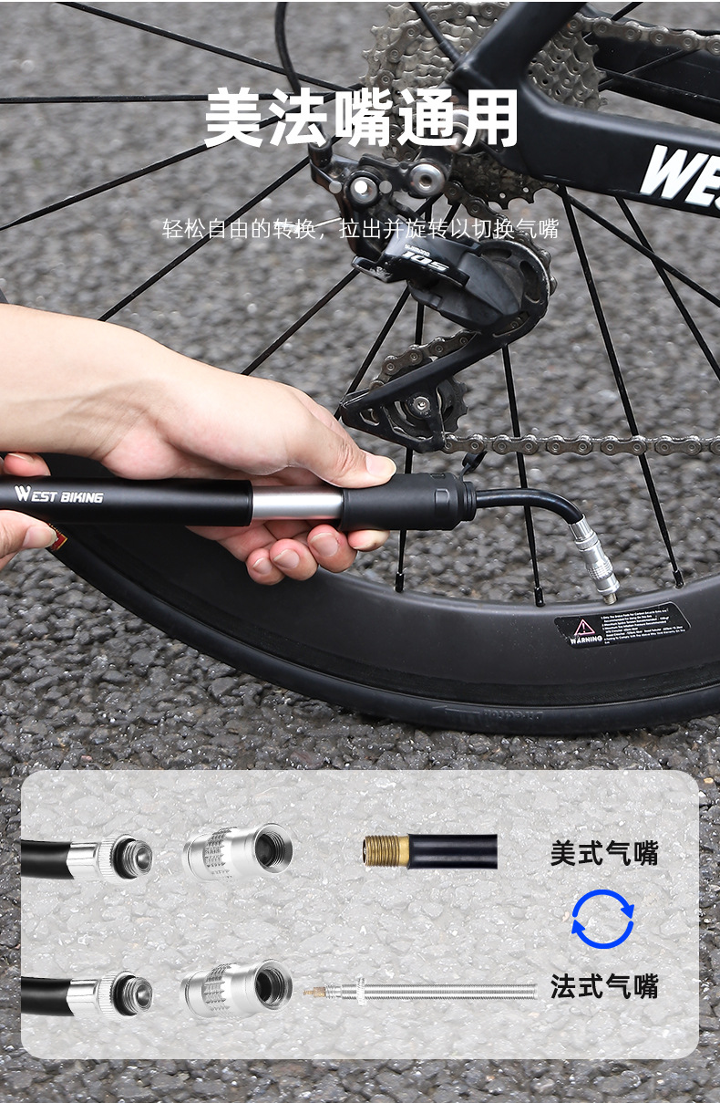 WEST BIKING 자전거 펌프 미니 휴대용 펌프 알루미늄 합금 호스 펌프 장비 포함