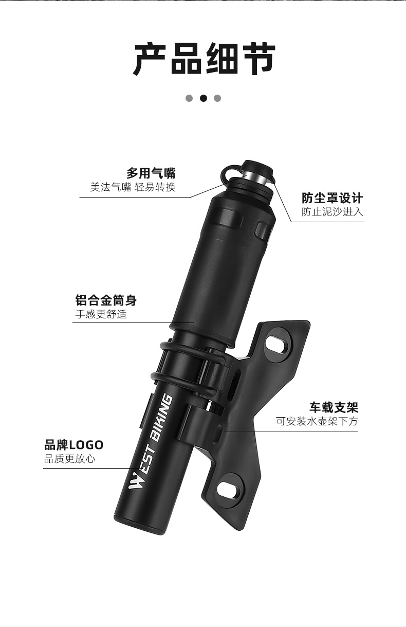 WEST BIKING 자전거 펌프 미니 휴대용 펌프 알루미늄 합금 호스 펌프 장비 포함스토어 가기