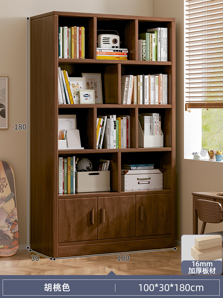 단단한 나무 책장 보관 랙 바닥 간단한 캐비닛 벽 거실 다층 사물함 학생 보관 가정용 책장스토어 가기