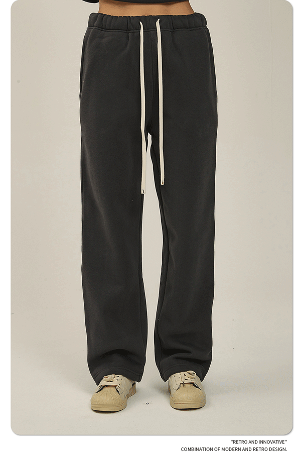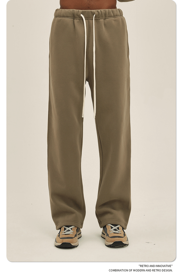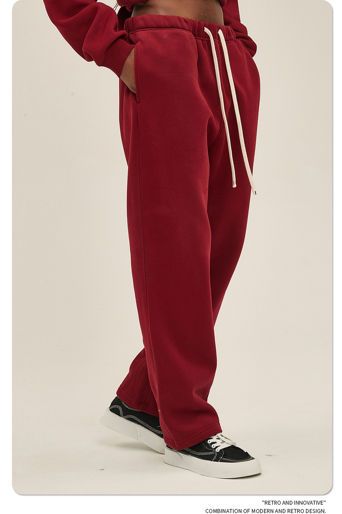 2025 가을, 겨울 신제품 350g 두꺼운 스트레이트 플러스 벨벳 솔리드 컬러 남성 바지 남성용 루즈 스포츠 캐주얼 바지