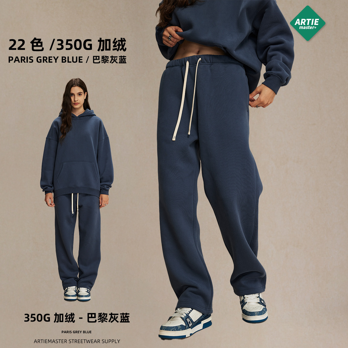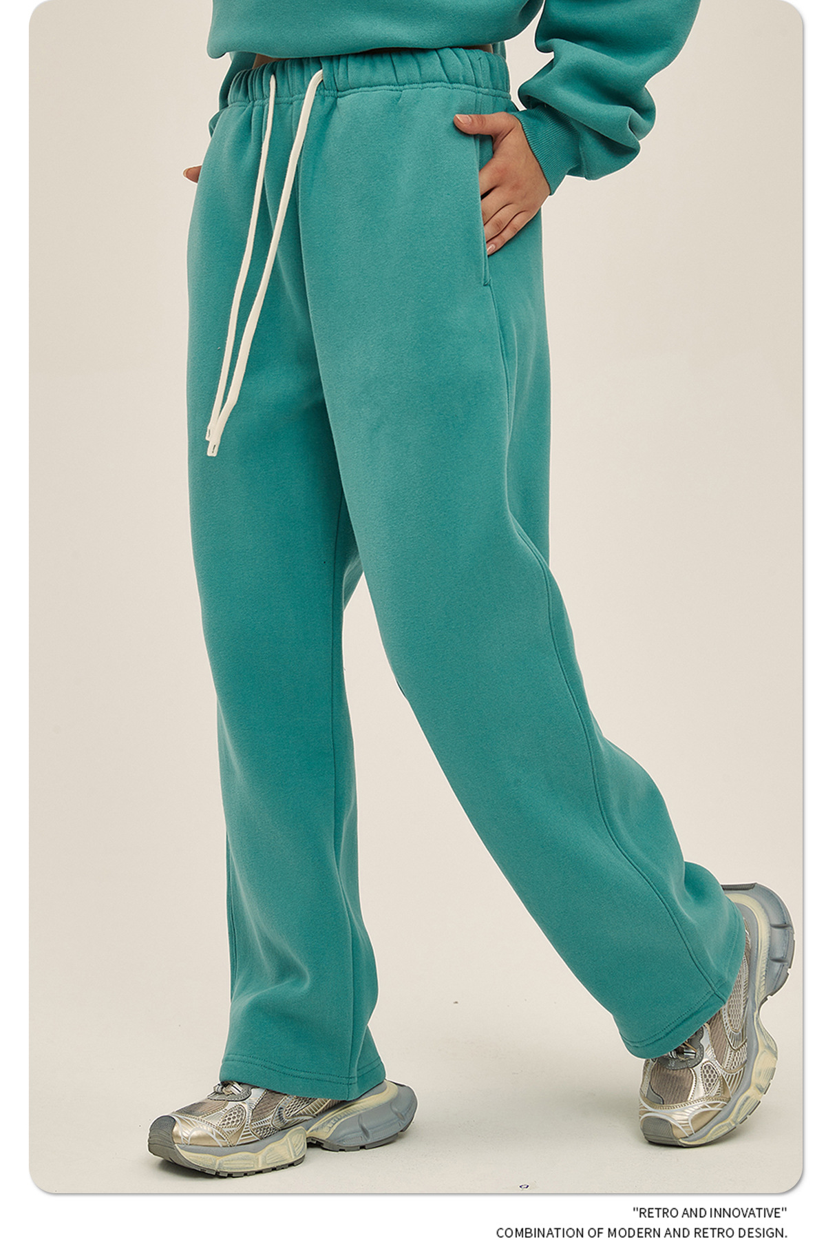 2025 가을, 겨울 신제품 350g 두꺼운 스트레이트 플러스 벨벳 솔리드 컬러 남성 바지 남성용 루즈 스포츠 캐주얼 바지스토어 가기