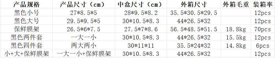 • 1.0 검정색 소형 - 1.0 모델 + 검정색 대형 - 1.0 모델 + 플라스틱 랩 홀더(자기 상자 포장)
