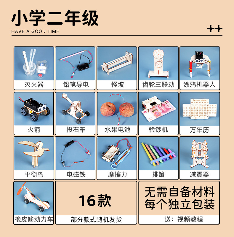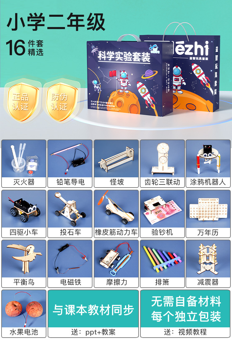 • 초등학교 2학년 [물리학 16세트, 확장 선물상자 20개, 선물가방] 교과서와 동기화된 무료 배터리 제공