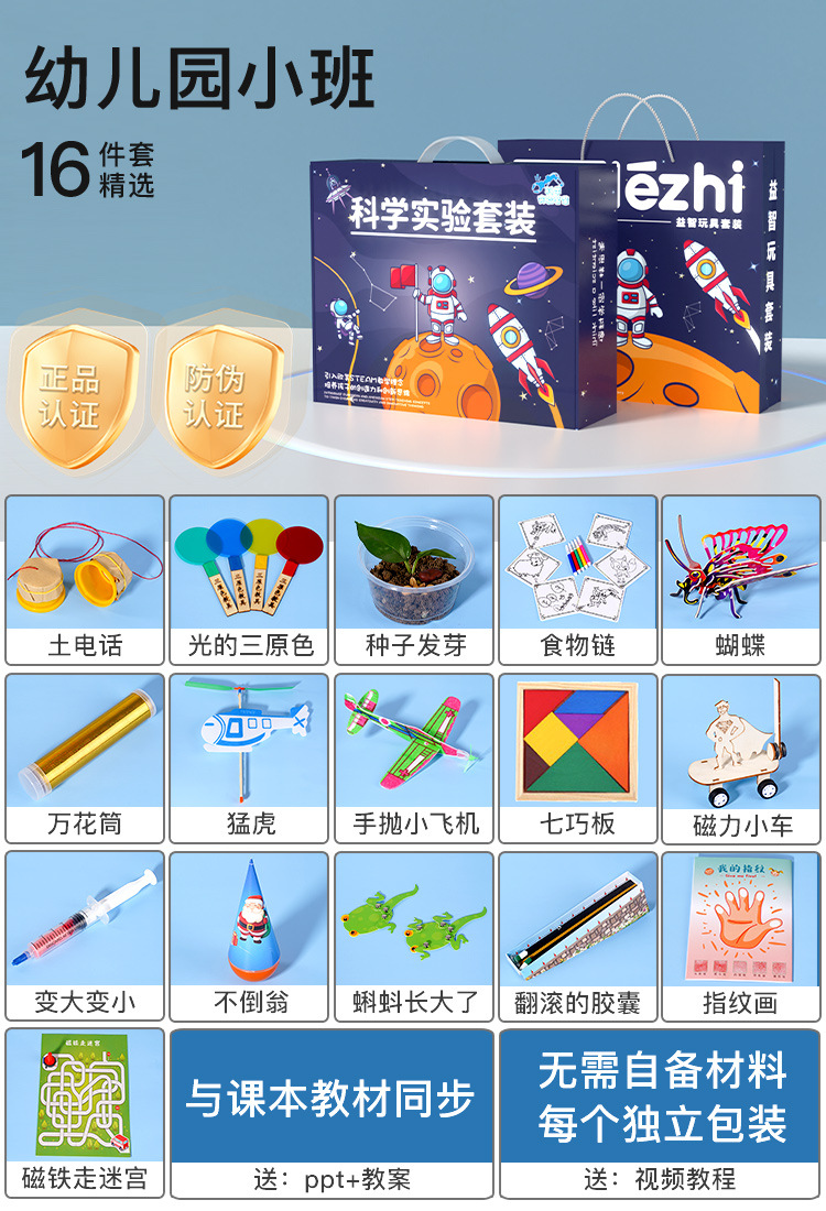 • 소규모 수업 [물리학 16세트, 확장 선물 상자 20개]에는 비디오 원리 교육이 포함되어 있습니다.