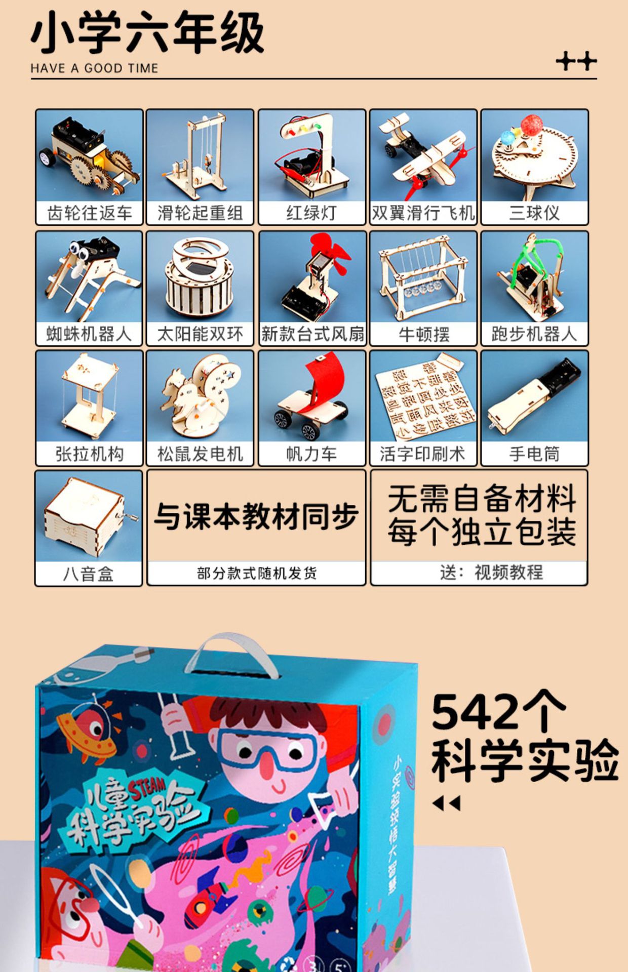 • 초등학교 6학년 [물리학 16세트, 확장 선물상자 20개, 선물가방] 교과서와 동기화된 무료 배터리 제공