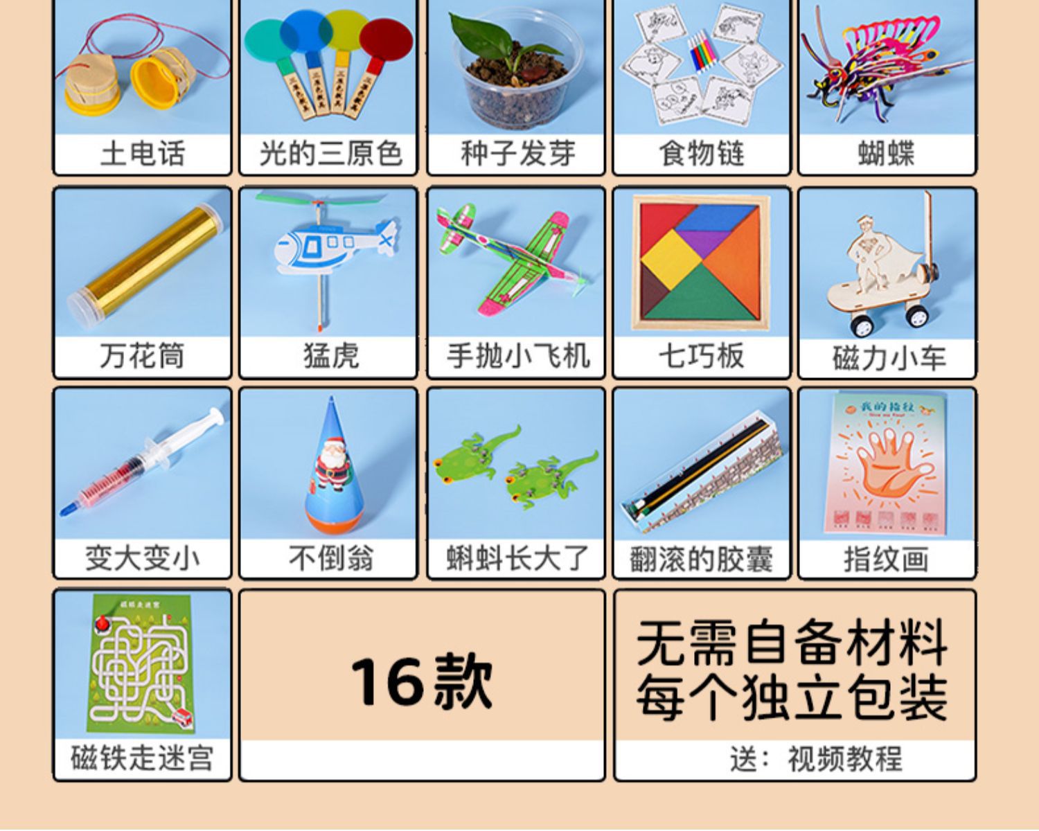 • 중산층 [물리 20 확장 선물 가방 16 세트] 는 자체 재료를 가져올 필요가 없습니다.