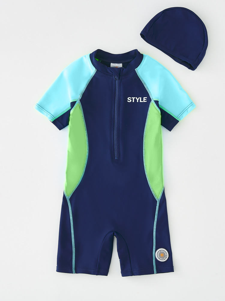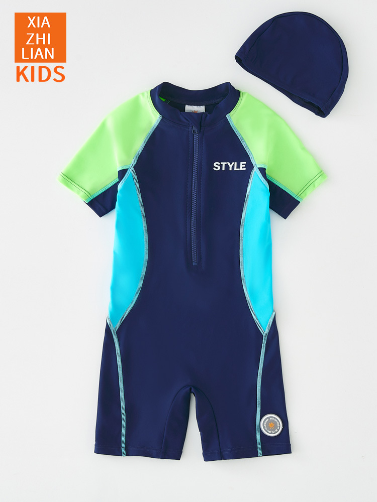 韩国时尚儿童连体泳衣男童运动防晒速干男孩游泳衣宝宝沙滩冲浪服