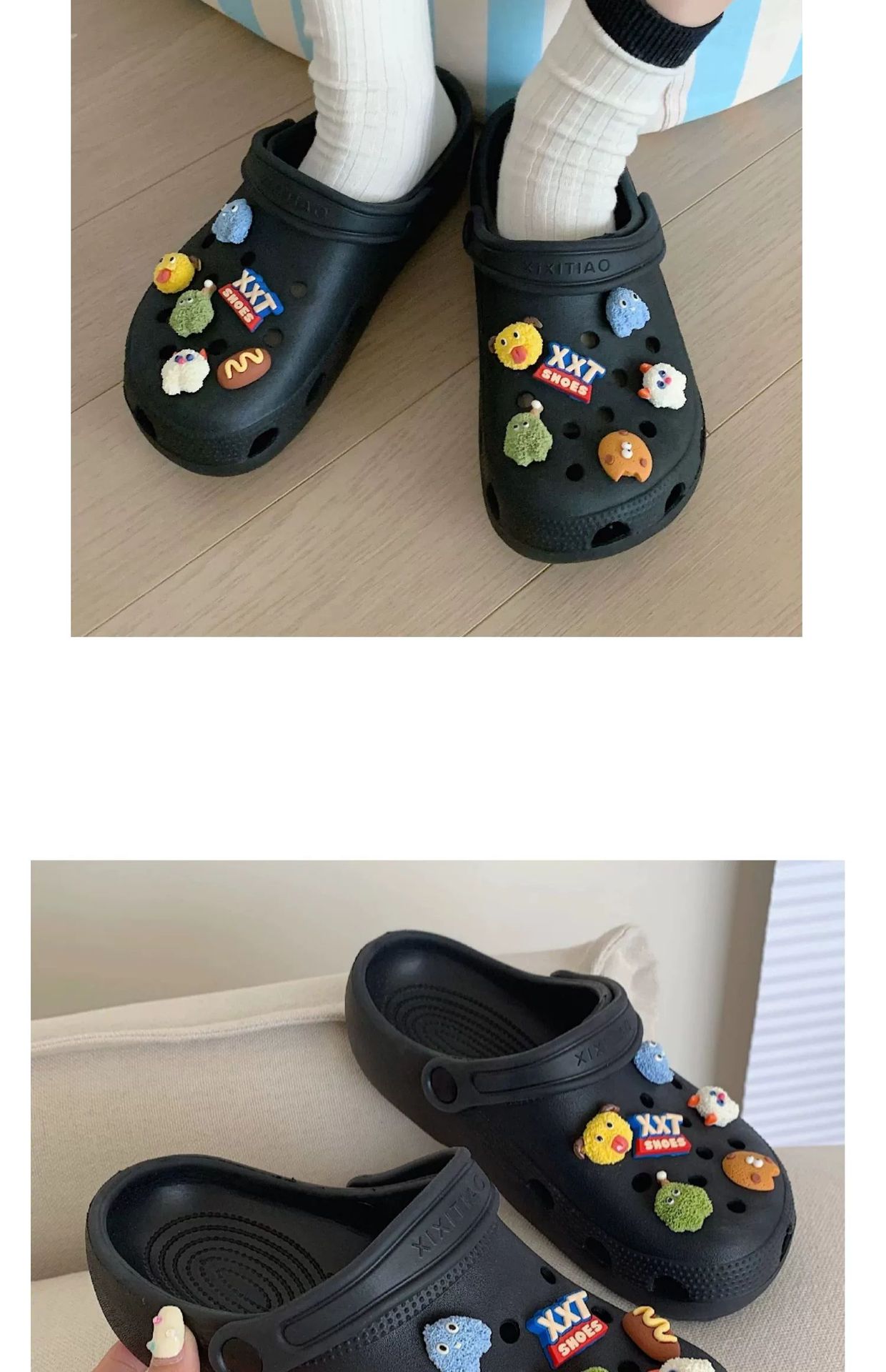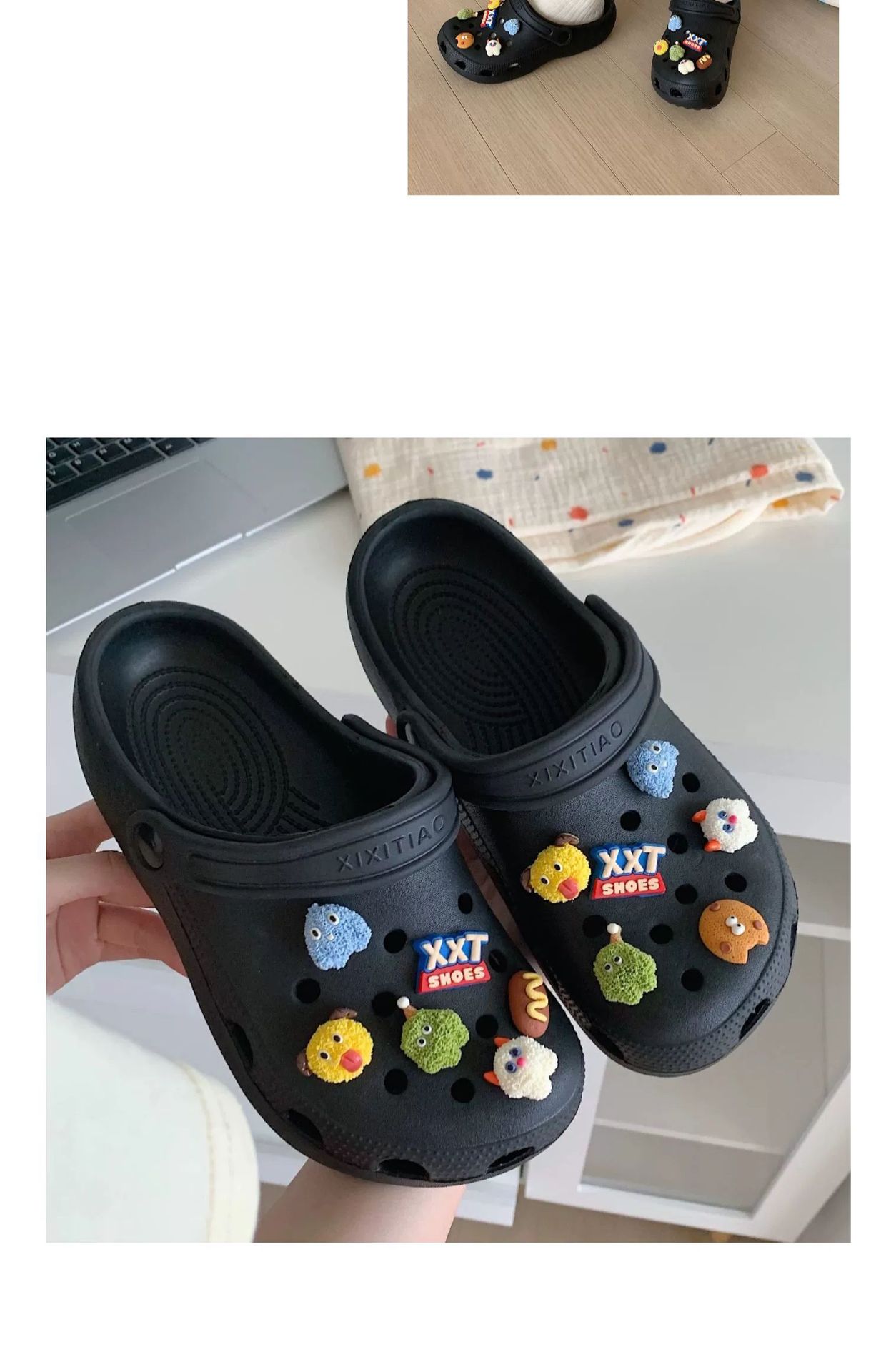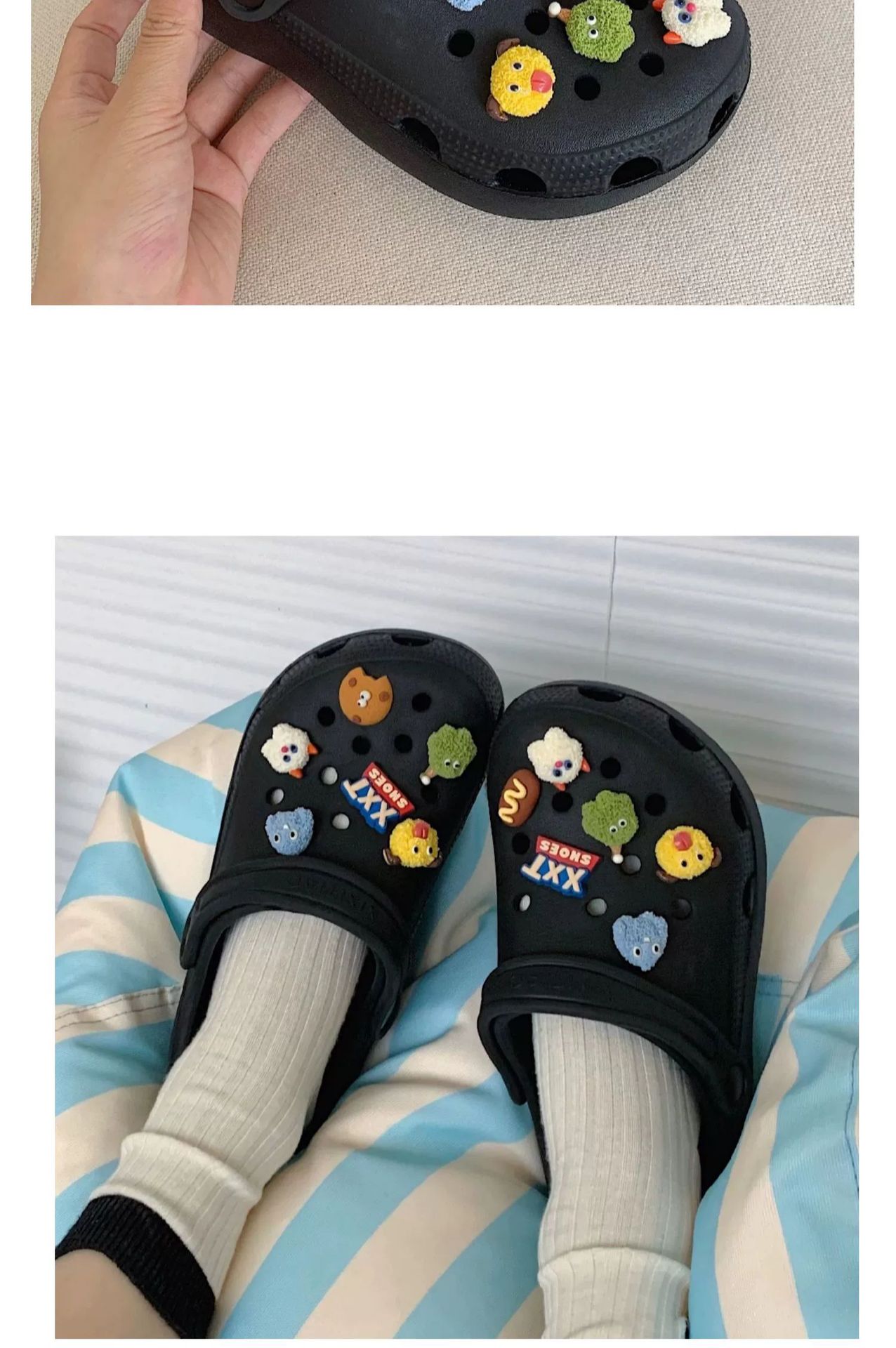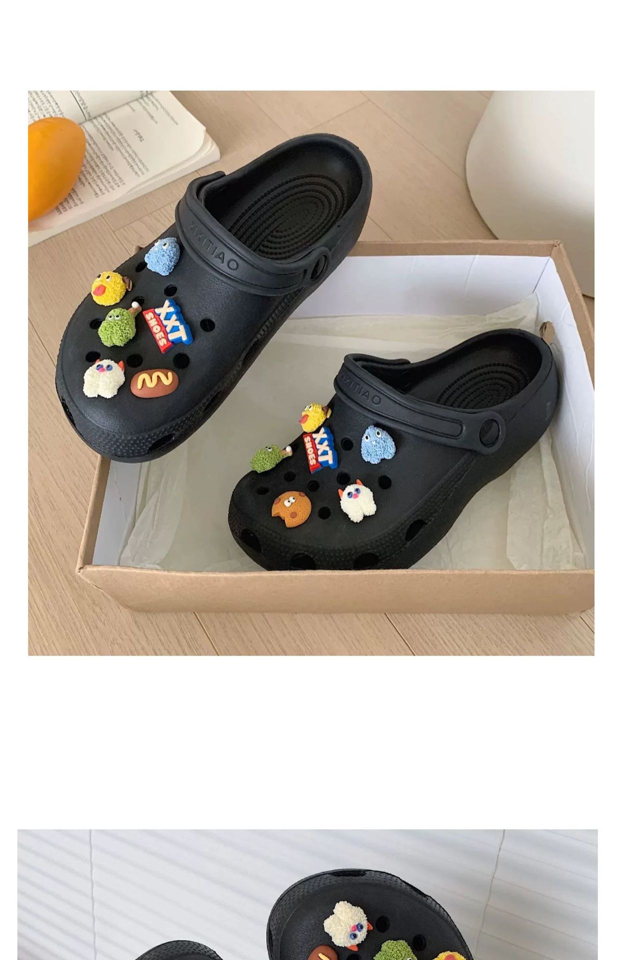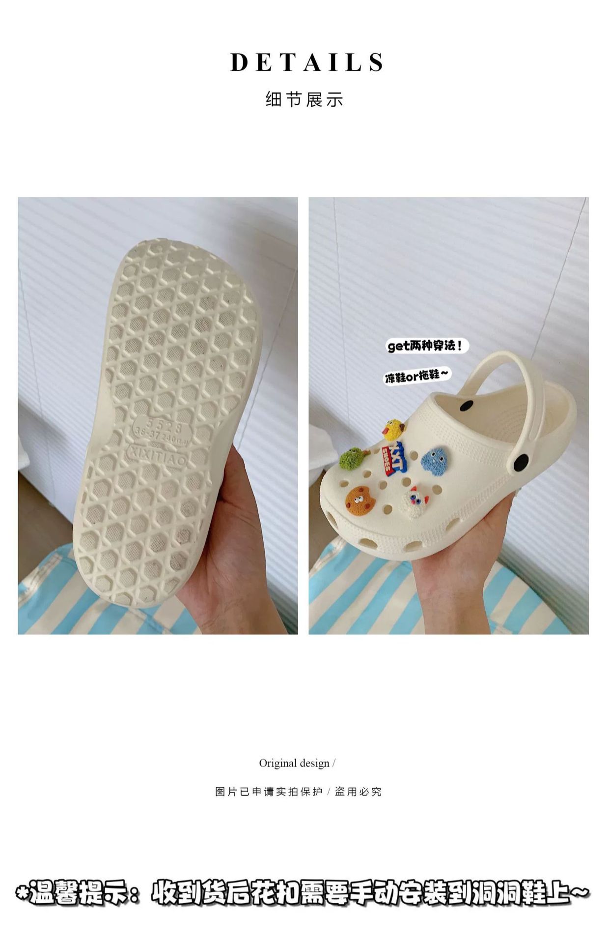 • 따뜻한 팁: 물건을받은 후 꽃 버클을 구멍 신발에 수동으로 설치해야합니다.