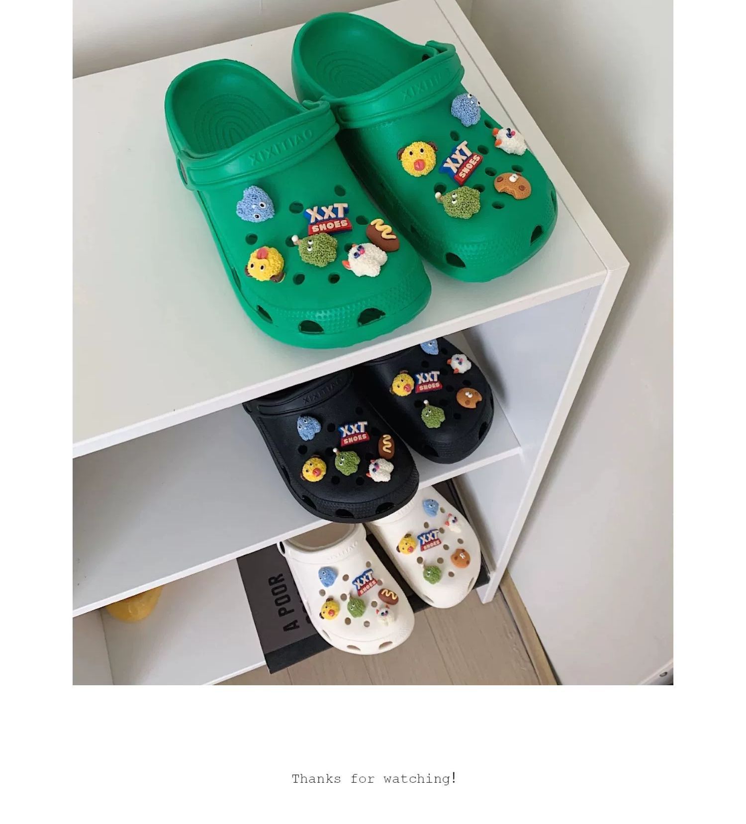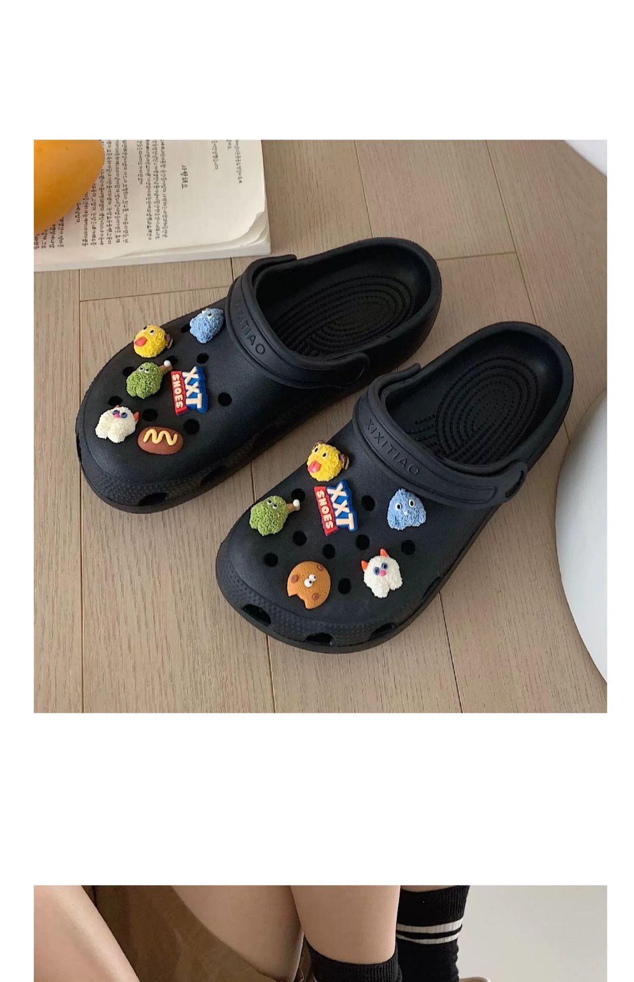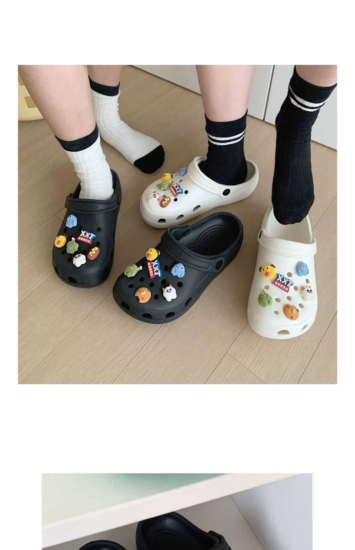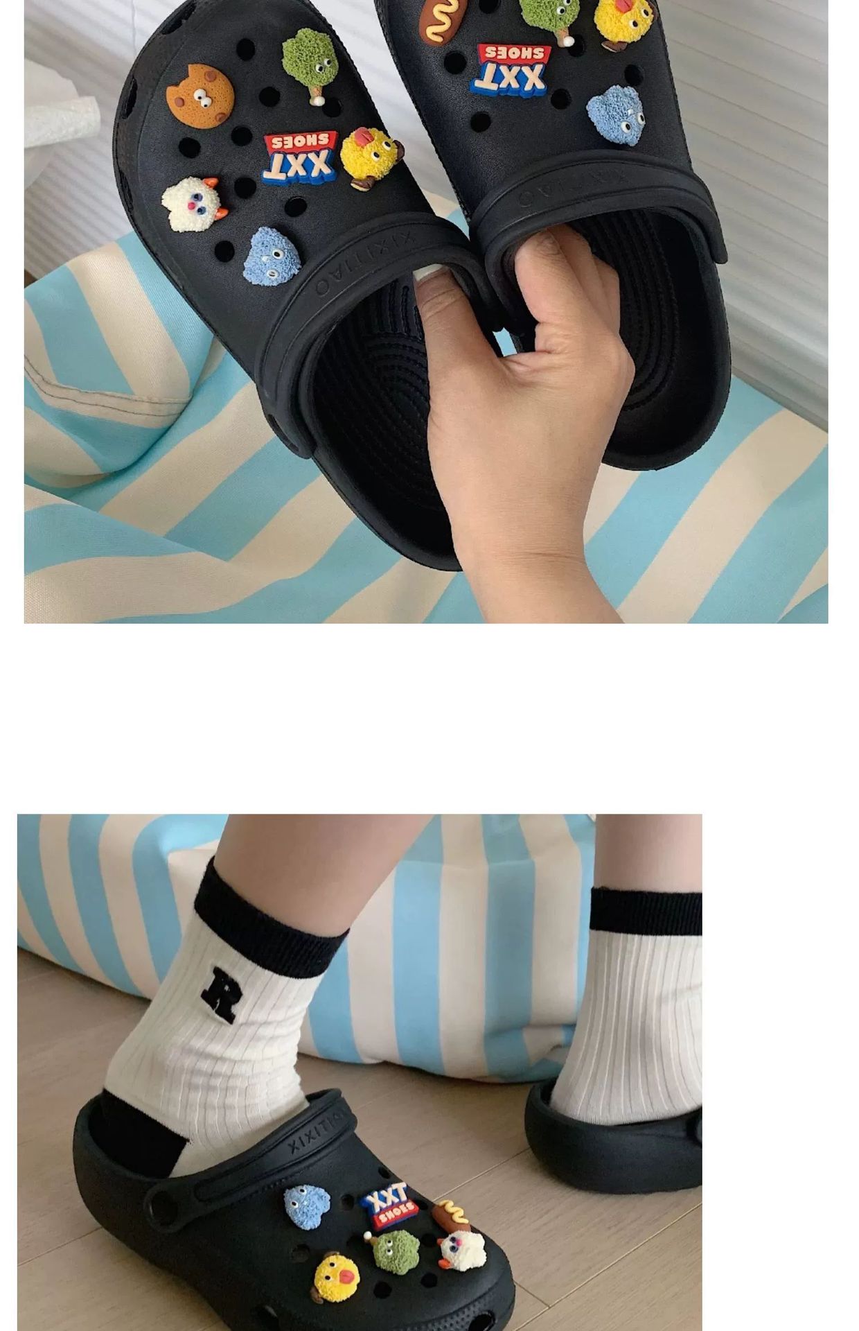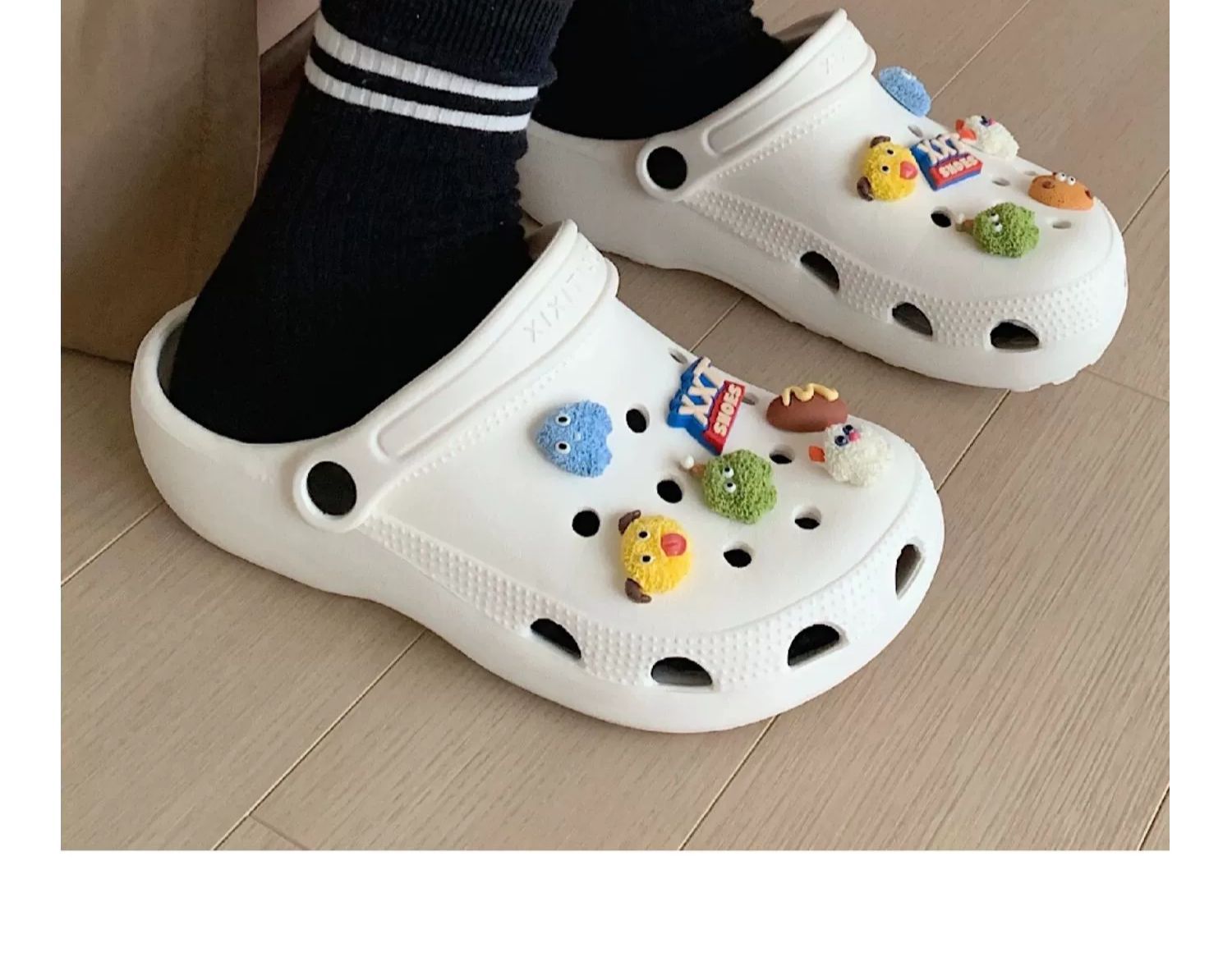 • 따뜻한 팁: 물건을받은 후 꽃 버클을 구멍 신발에 수동으로 설치해야합니다.