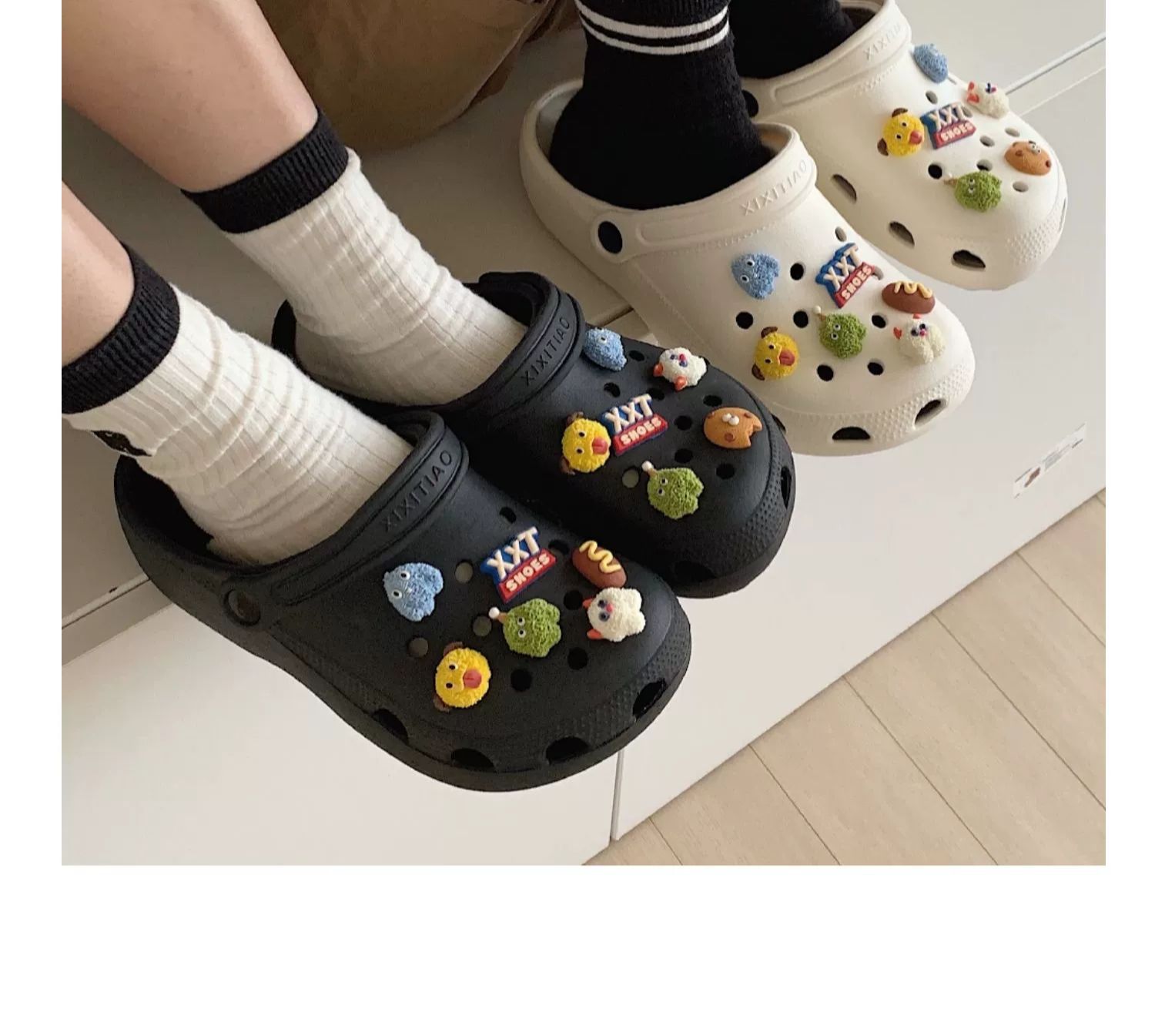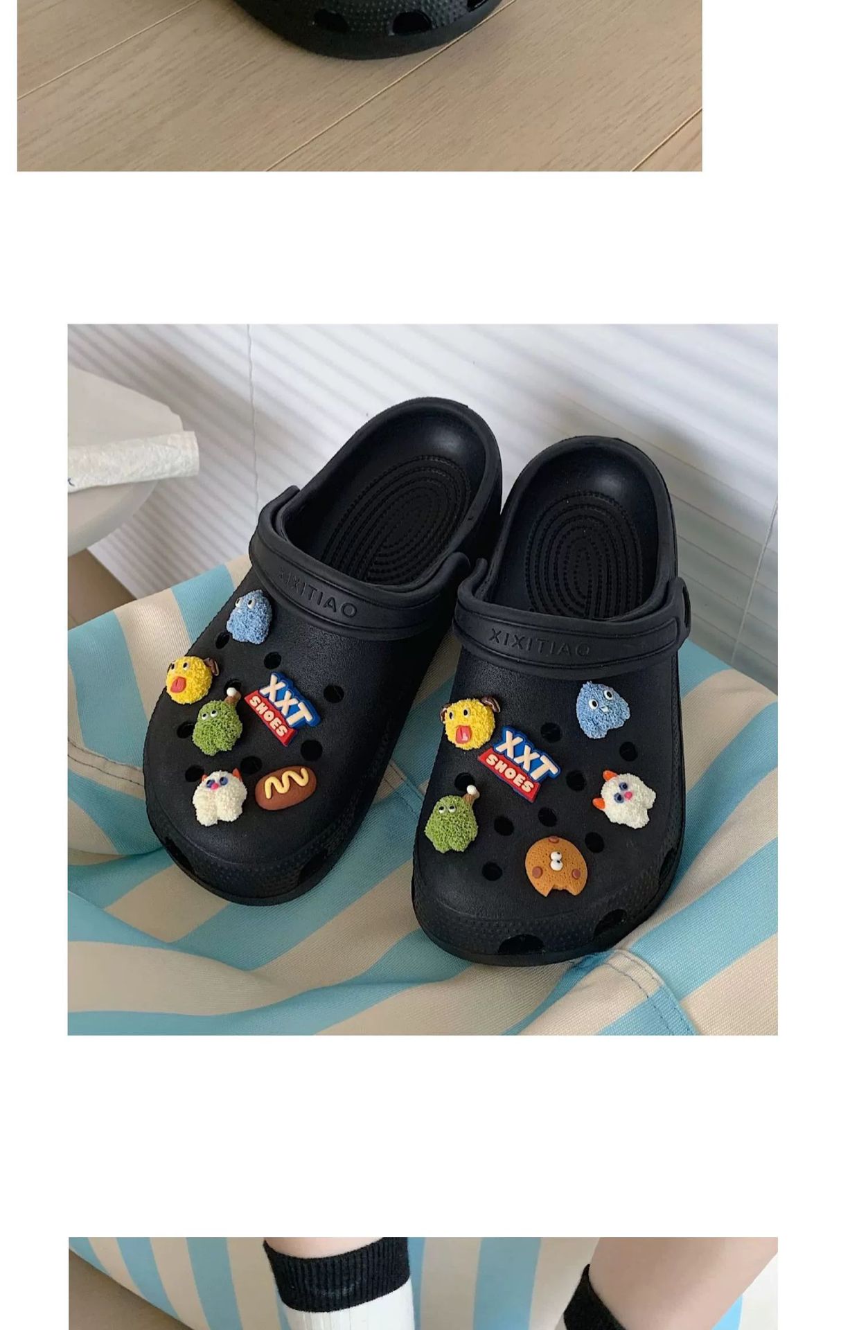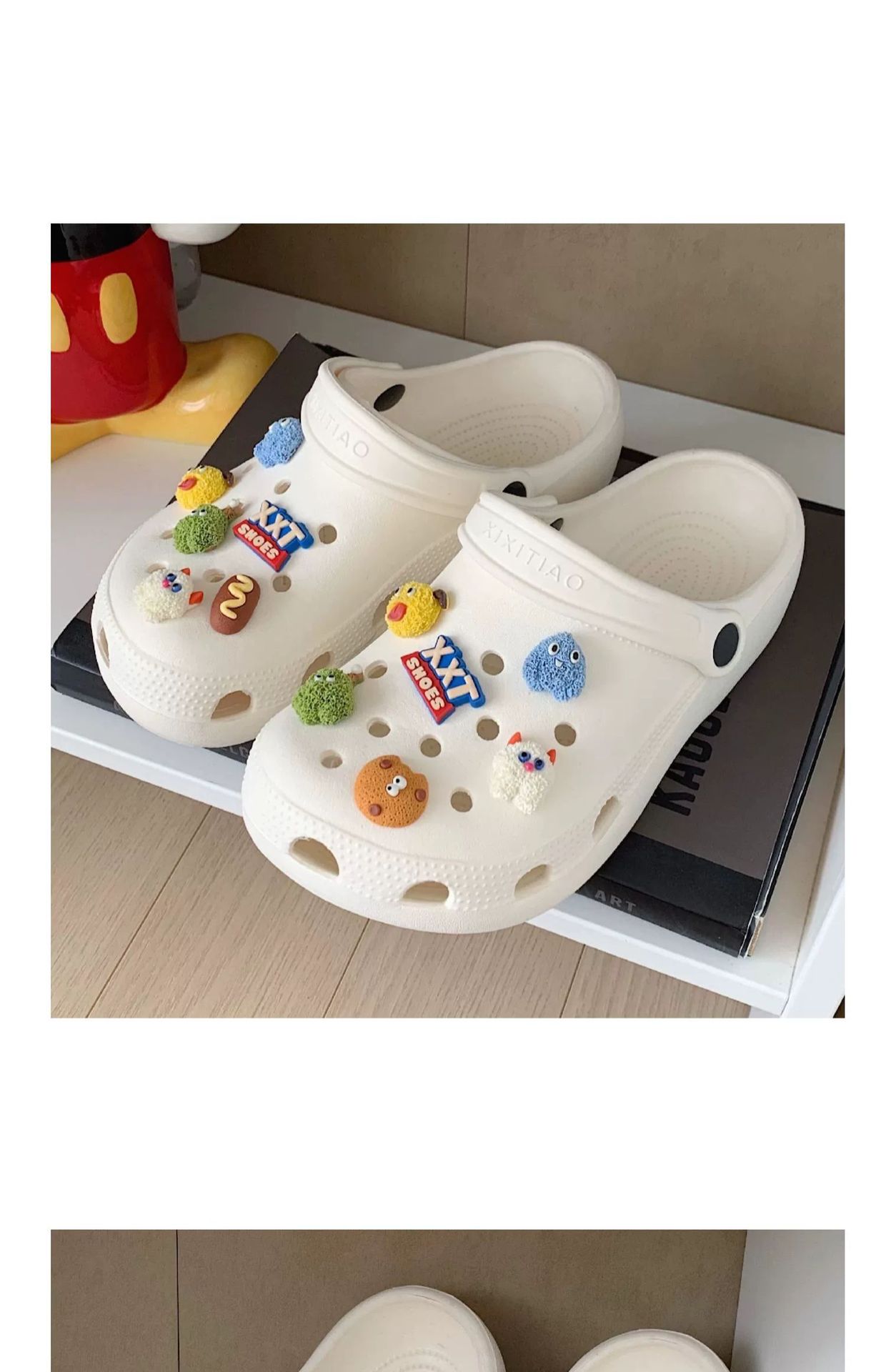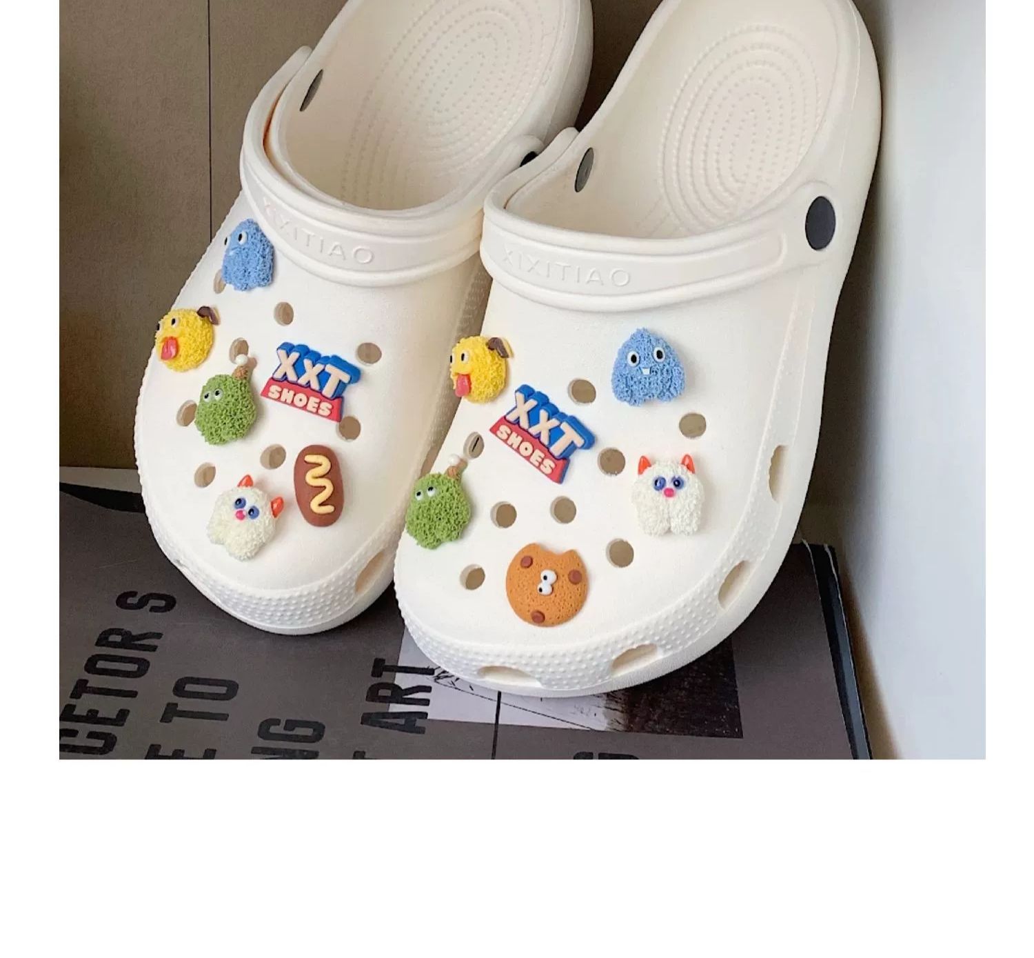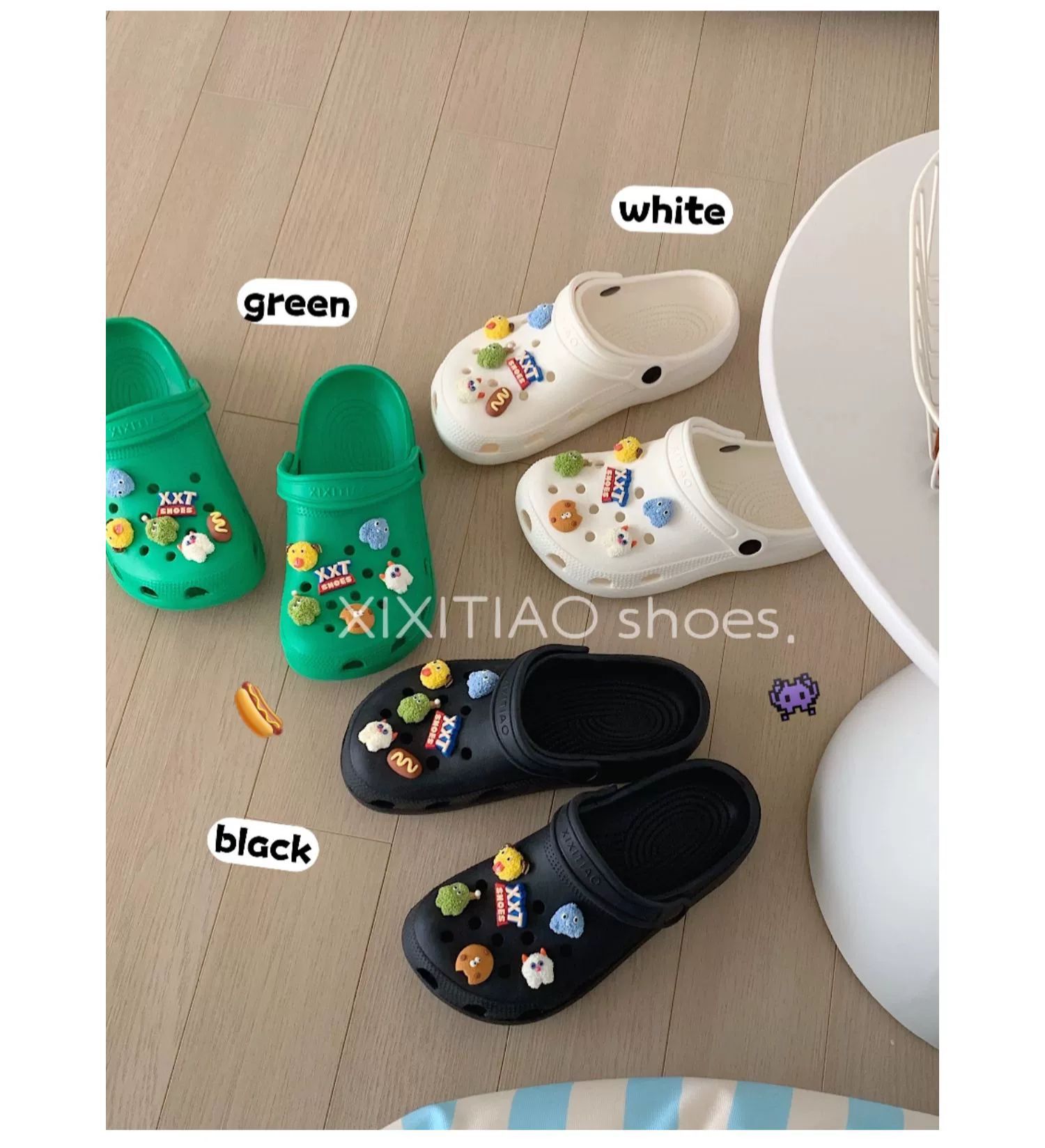 • 따뜻한 팁: 물건을받은 후 꽃 버클을 구멍 신발에 수동으로 설치해야합니다.