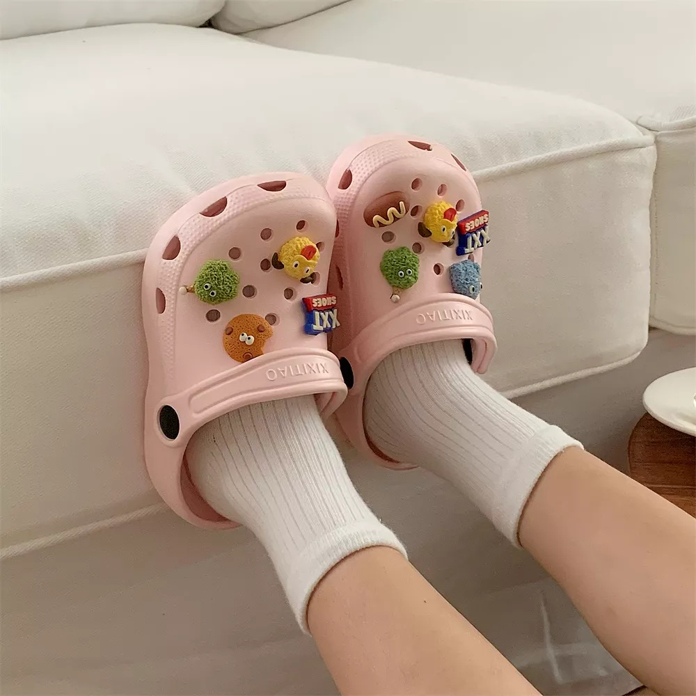 패션 귀여운 만화 괴물 편안한 복장 여성용 비치 샌들 부드러운 밑창 야외 발가락 구멍 신발 여름