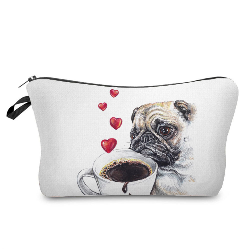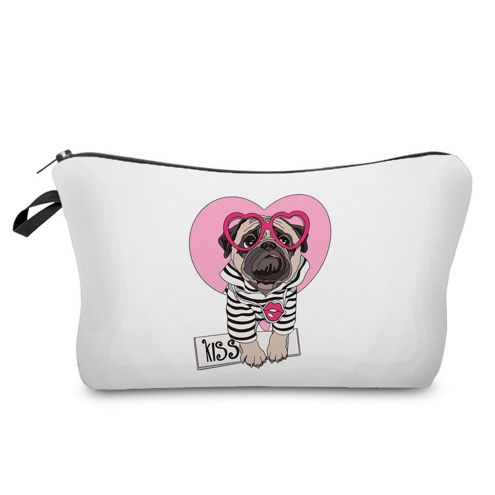 간단한 만화 퍼그 인쇄 보관 가방 여행 휴대용 화장품 가방 작은 인터넷 인기있는 세탁 가방