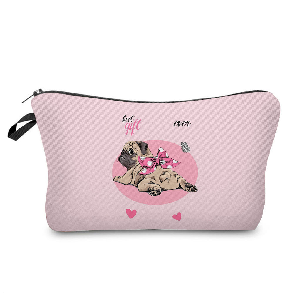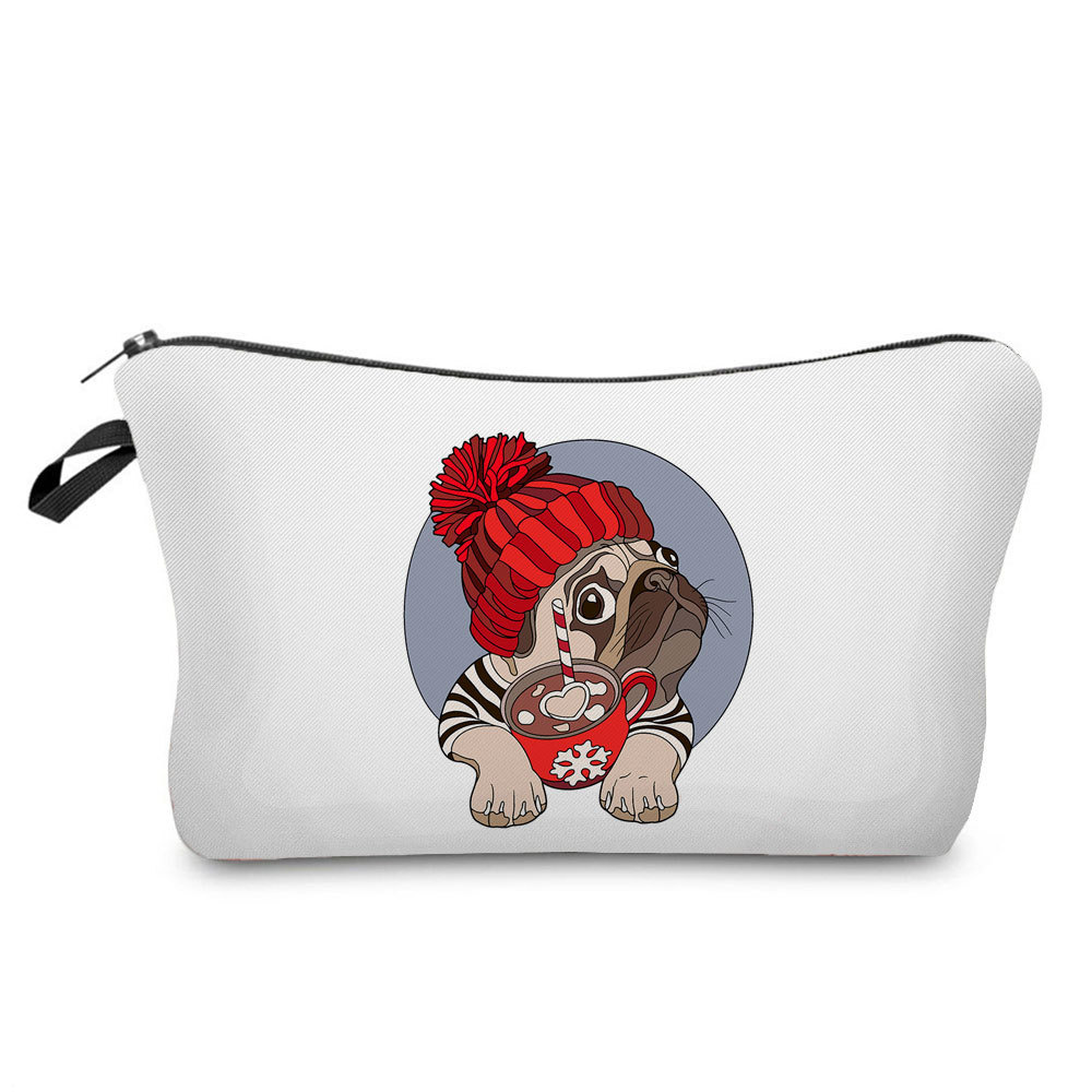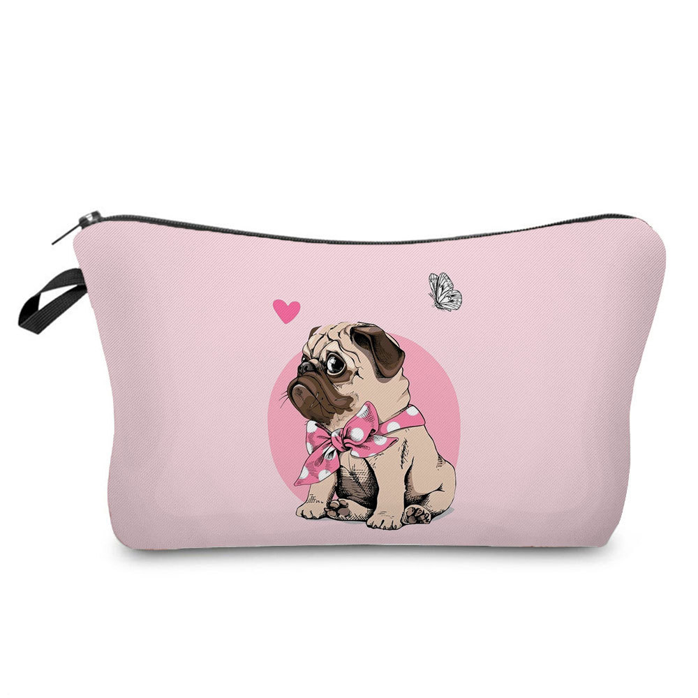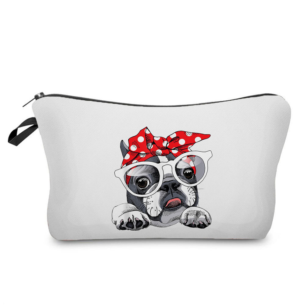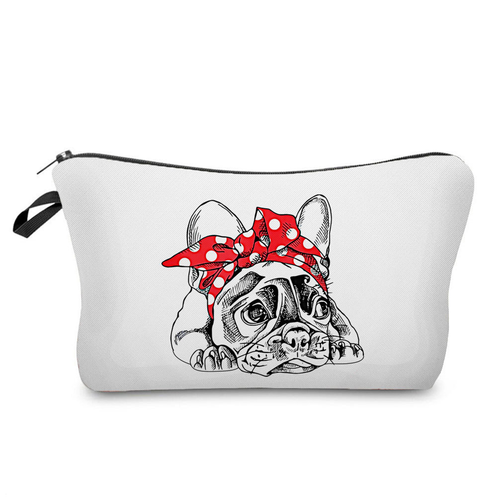 简约卡通哈巴狗印花化妆包 旅行随身便携收纳包 小巧网红洗漱包