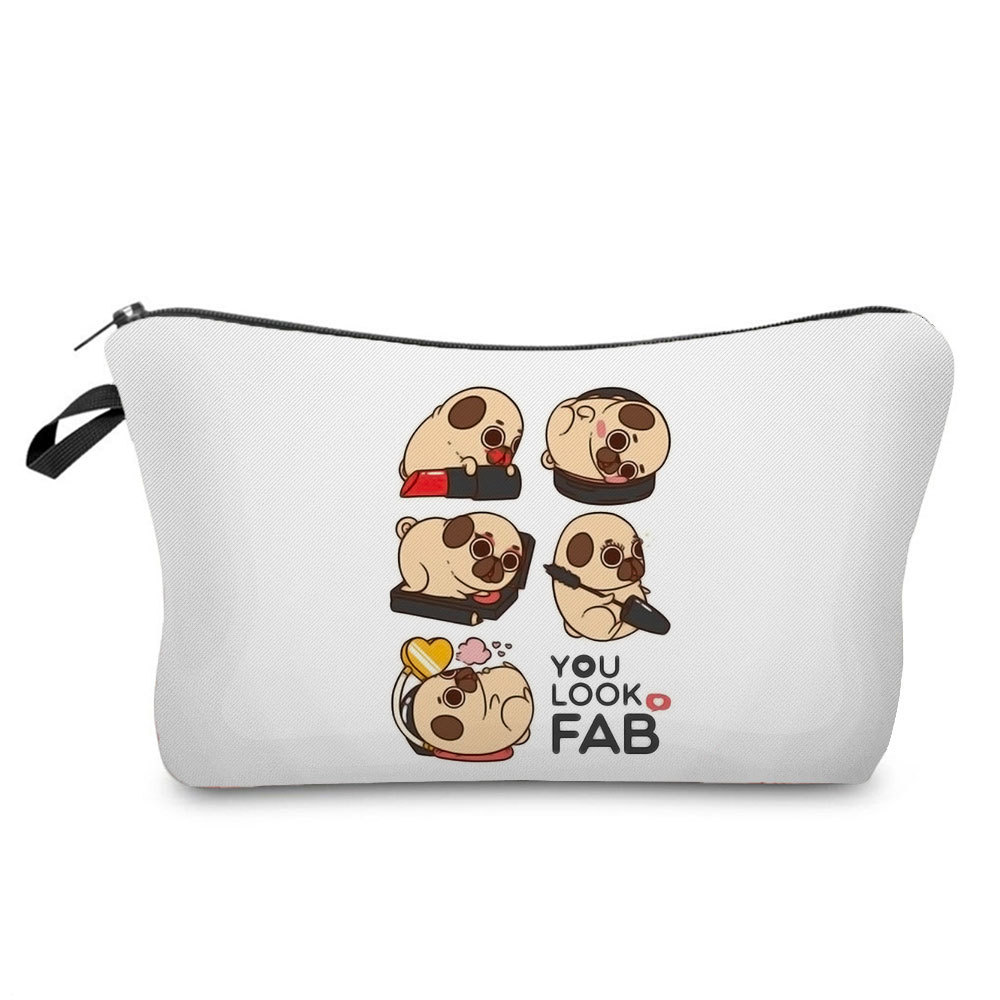 간단한 만화 퍼그 인쇄 보관 가방 여행 휴대용 화장품 가방 작은 인터넷 인기있는 세탁 가방스토어 가기