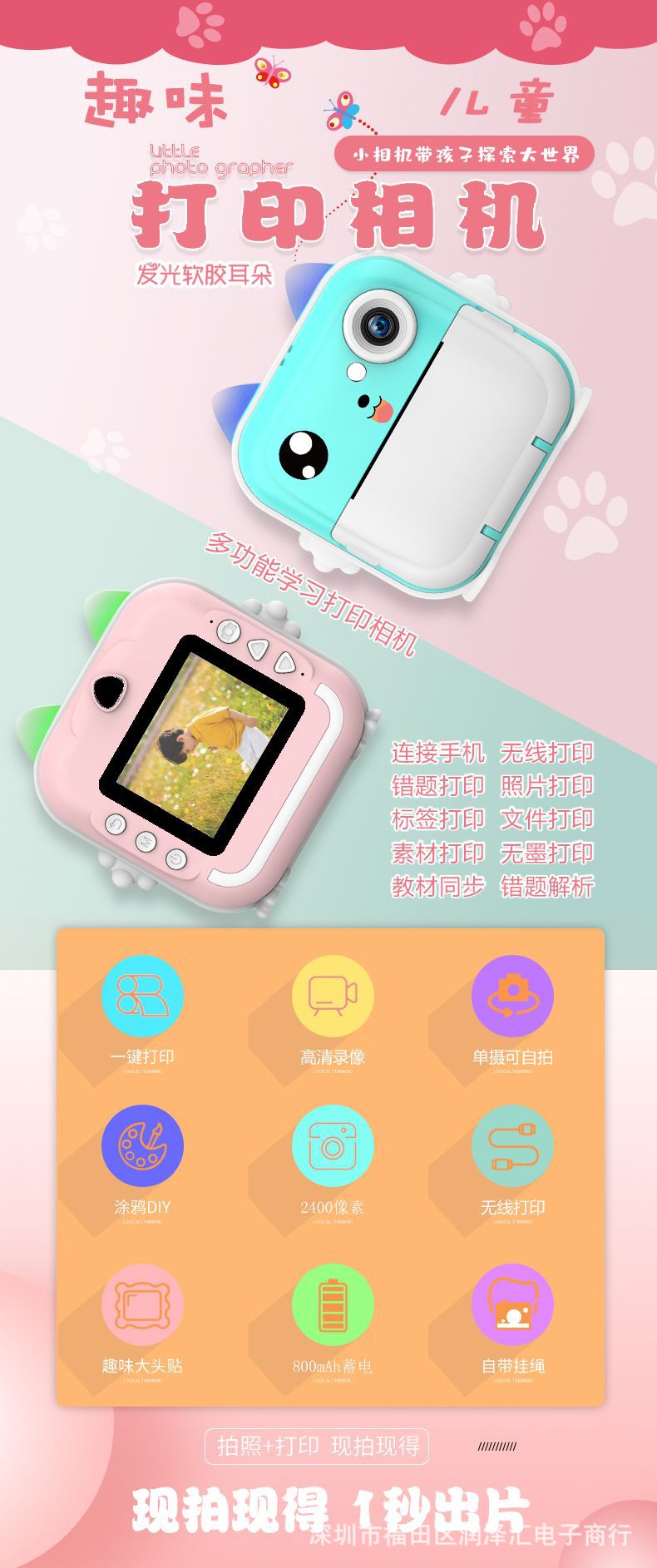 어린이 폴라로이드 카메라 HD 4 천만 잘못된 질문 프린터 앱 원 클릭 인쇄 지능형 디지털 국경스토어 가기