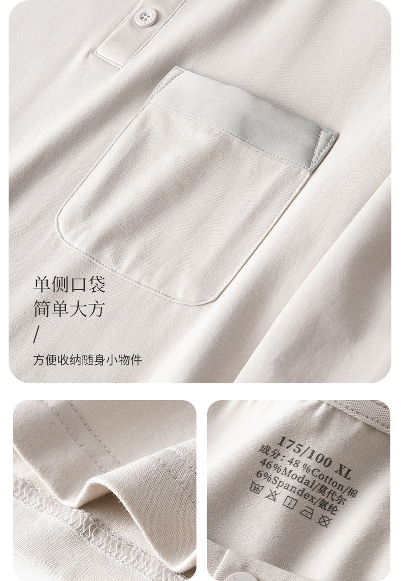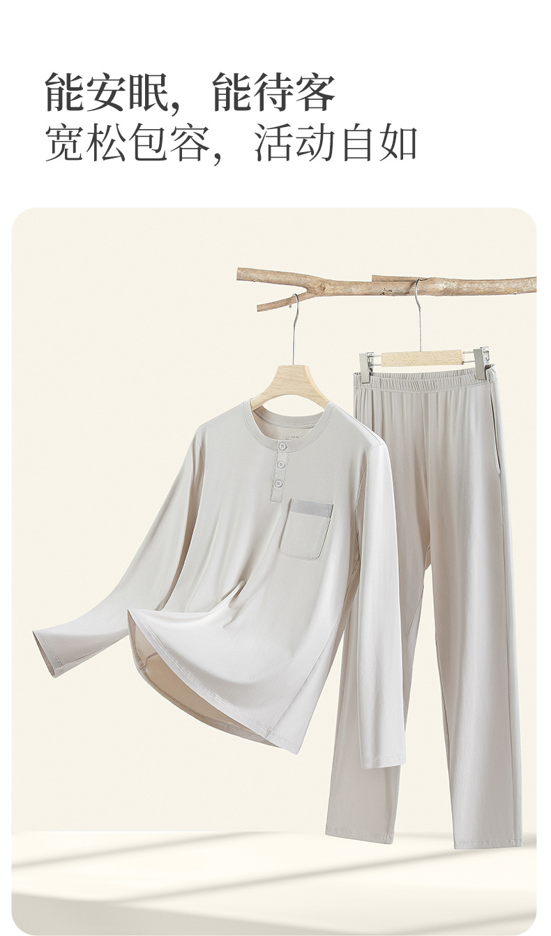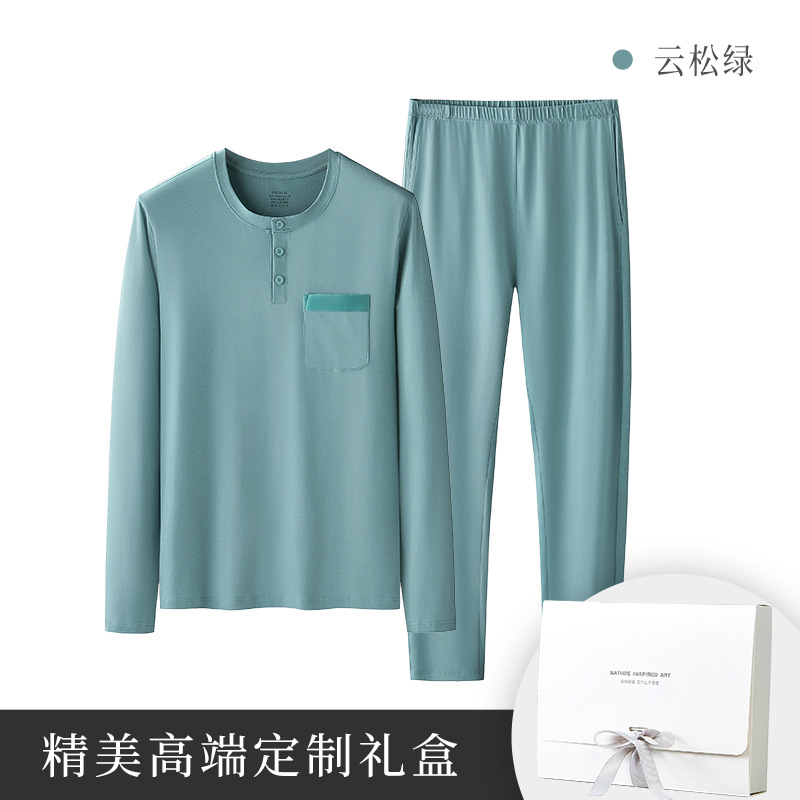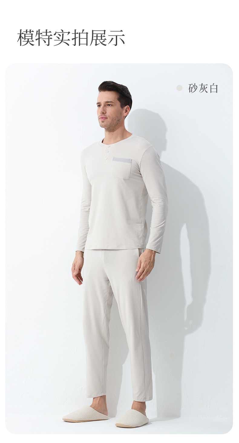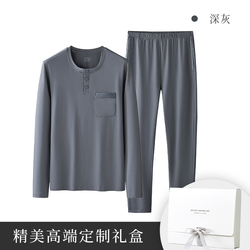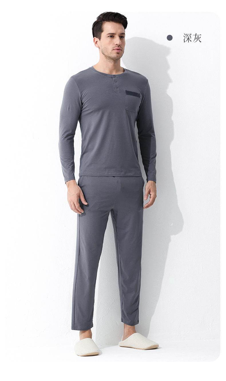 가벼운 럭셔리 코튼 모달 가을 겨울 남성용 잠옷 긴팔 캐주얼 세트 단색 얇은 스타일 외출 가능 홈웨어스토어 가기