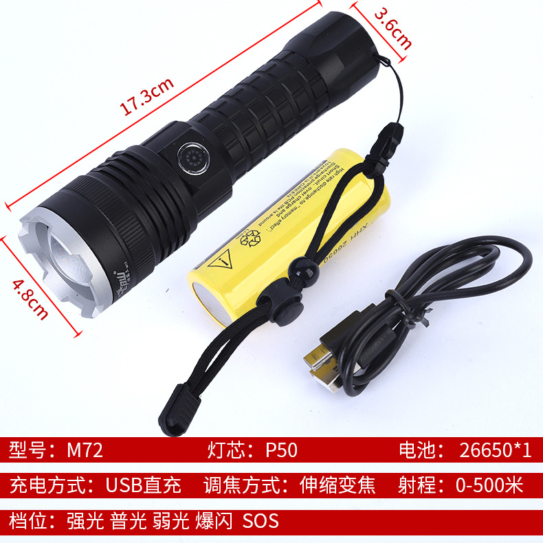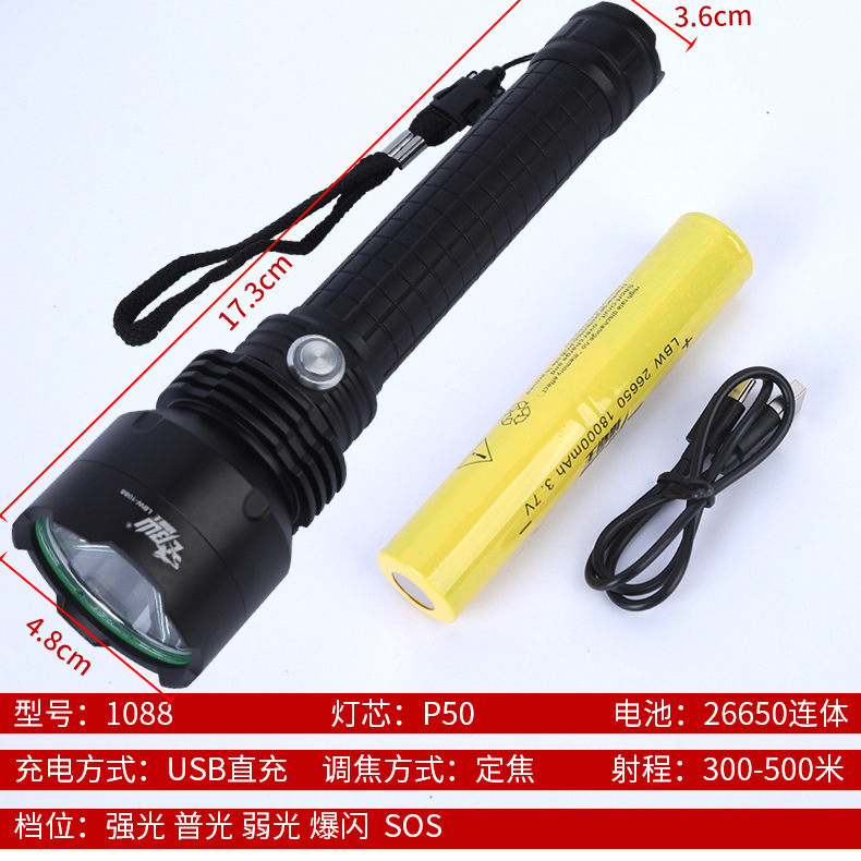 긴 내구성 강한 빛 높은 전력 옥외 편리한 장거리 조명을 충전하는 알루미늄 합금 손전등의 국경 간 공급스토어 가기