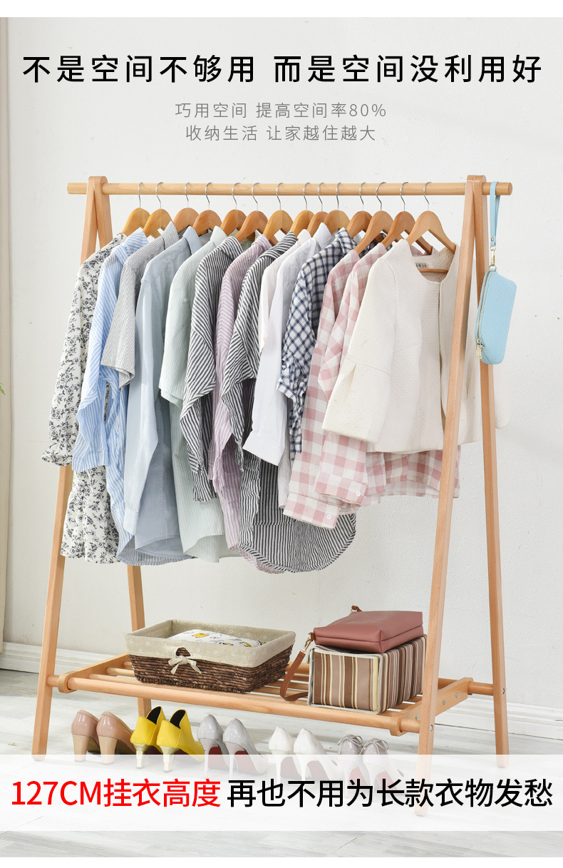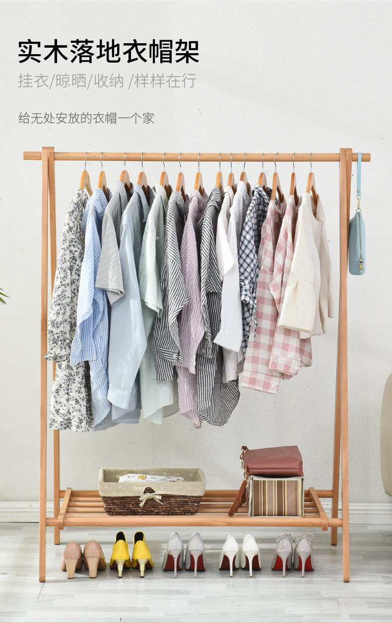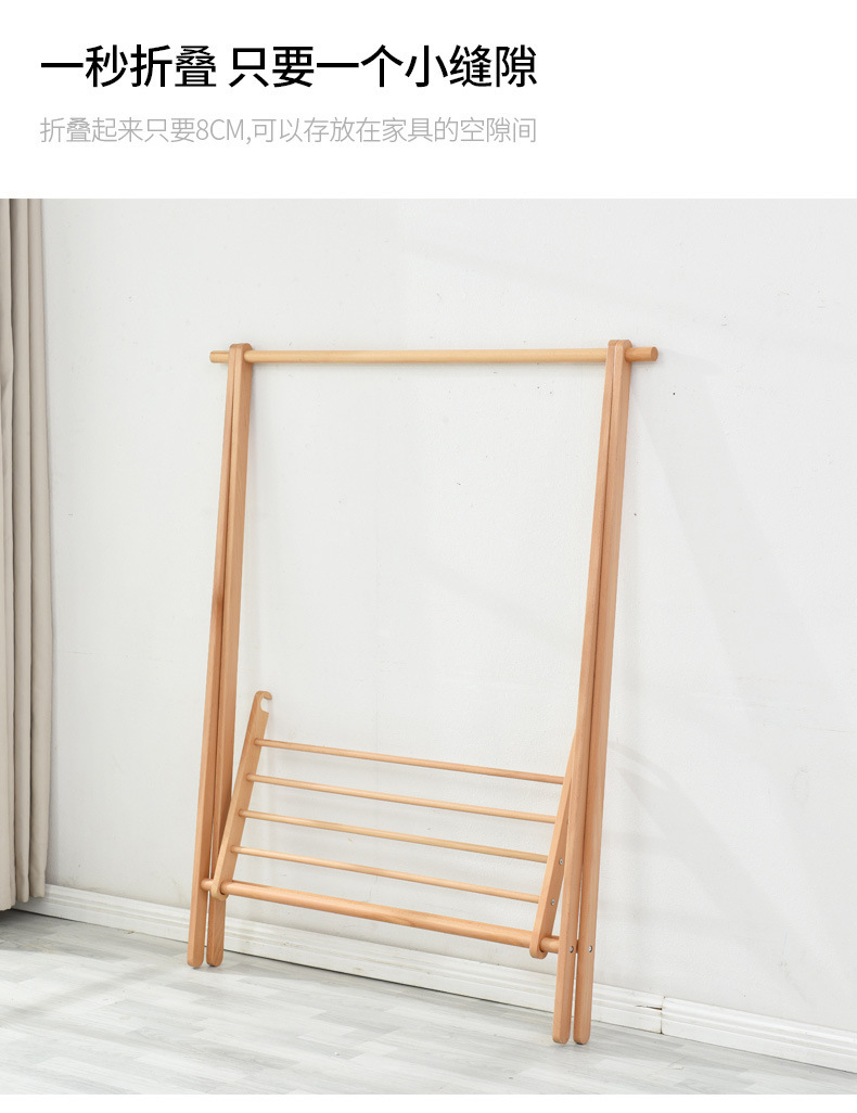 순수 단단한 나무 너도밤 나무 접이식 코트 랙 침실 간단한 옷걸이 다기능 바닥 가정용 의류 랙스토어 가기