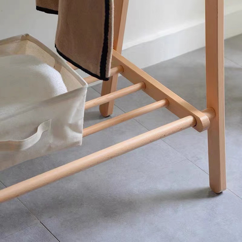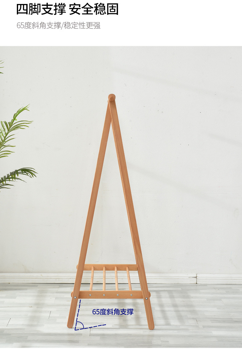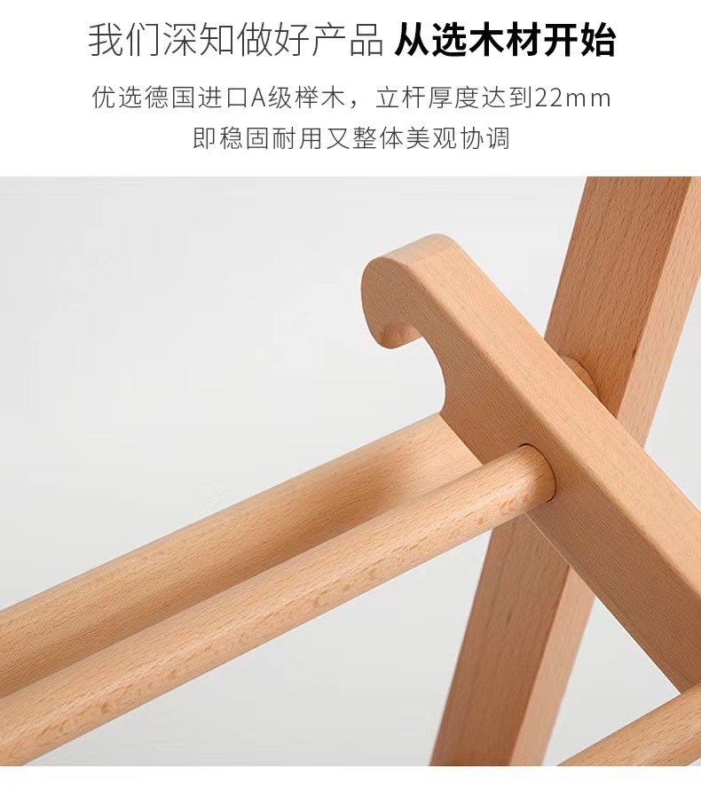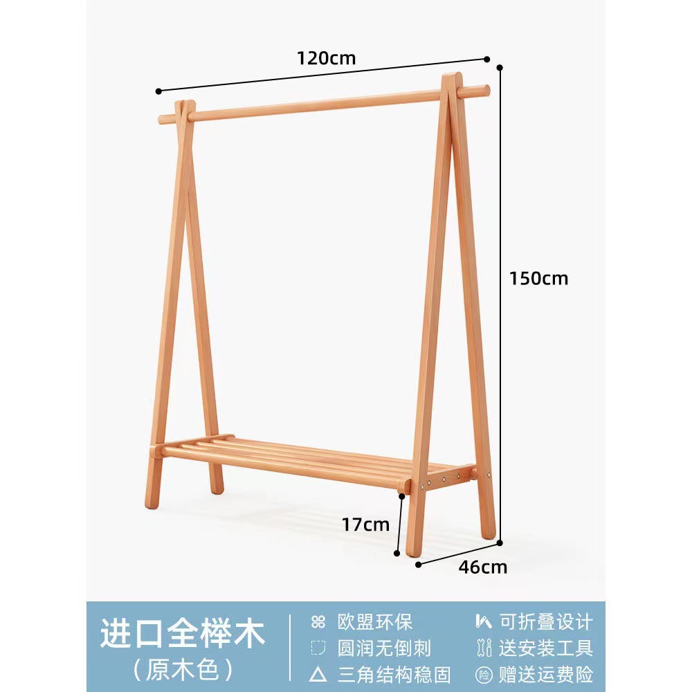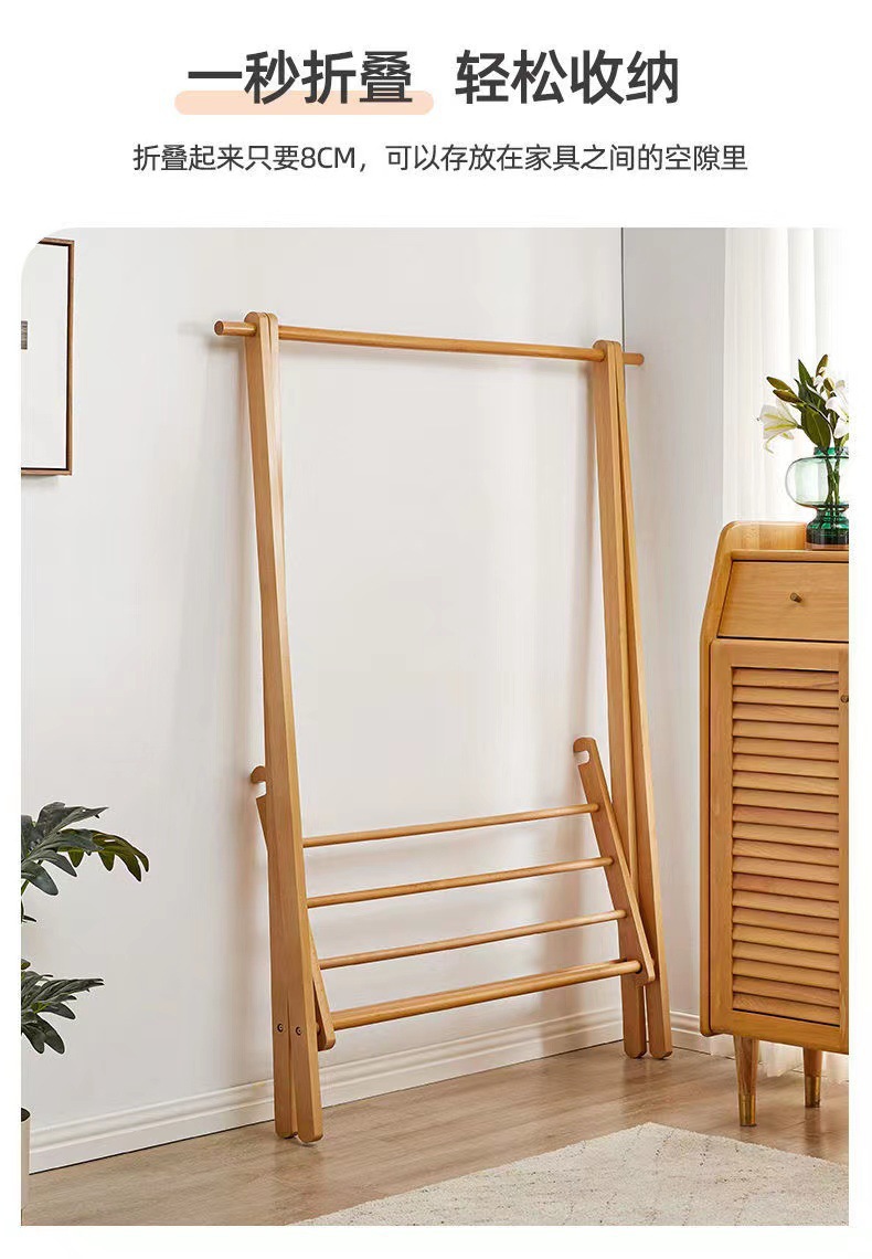 순수 단단한 나무 너도밤 나무 접이식 코트 랙 침실 간단한 옷걸이 다기능 바닥 가정용 의류 랙