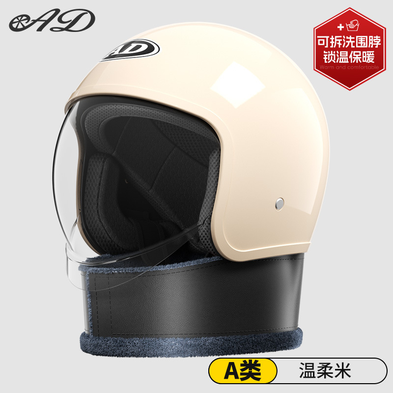AD 전기 오토바이 헬멧 3C 인증 남녀 사계절 보편적 인 반 헬멧 겨울 따뜻한 배터리 자동차 안전 헬멧