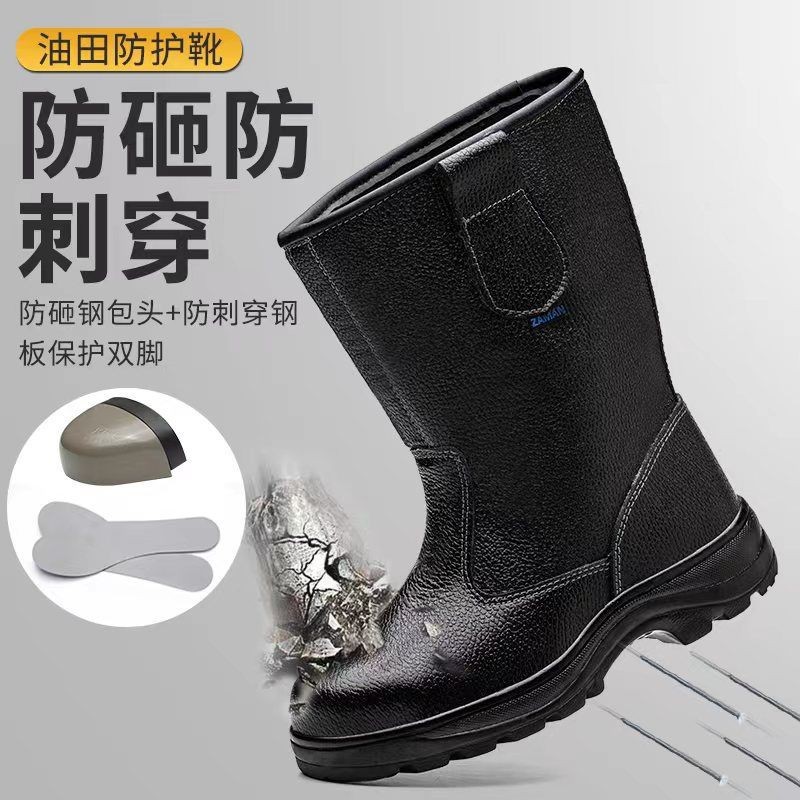 유전 노동 보호 장화 수출 가죽 안티 스매싱 펑크 방지 내마모성 고온 내성 하이탑 노동 보호 신발