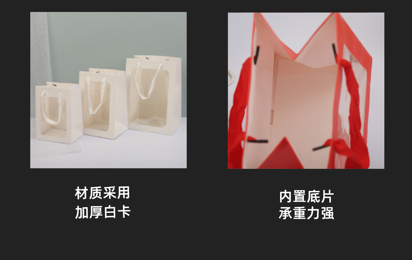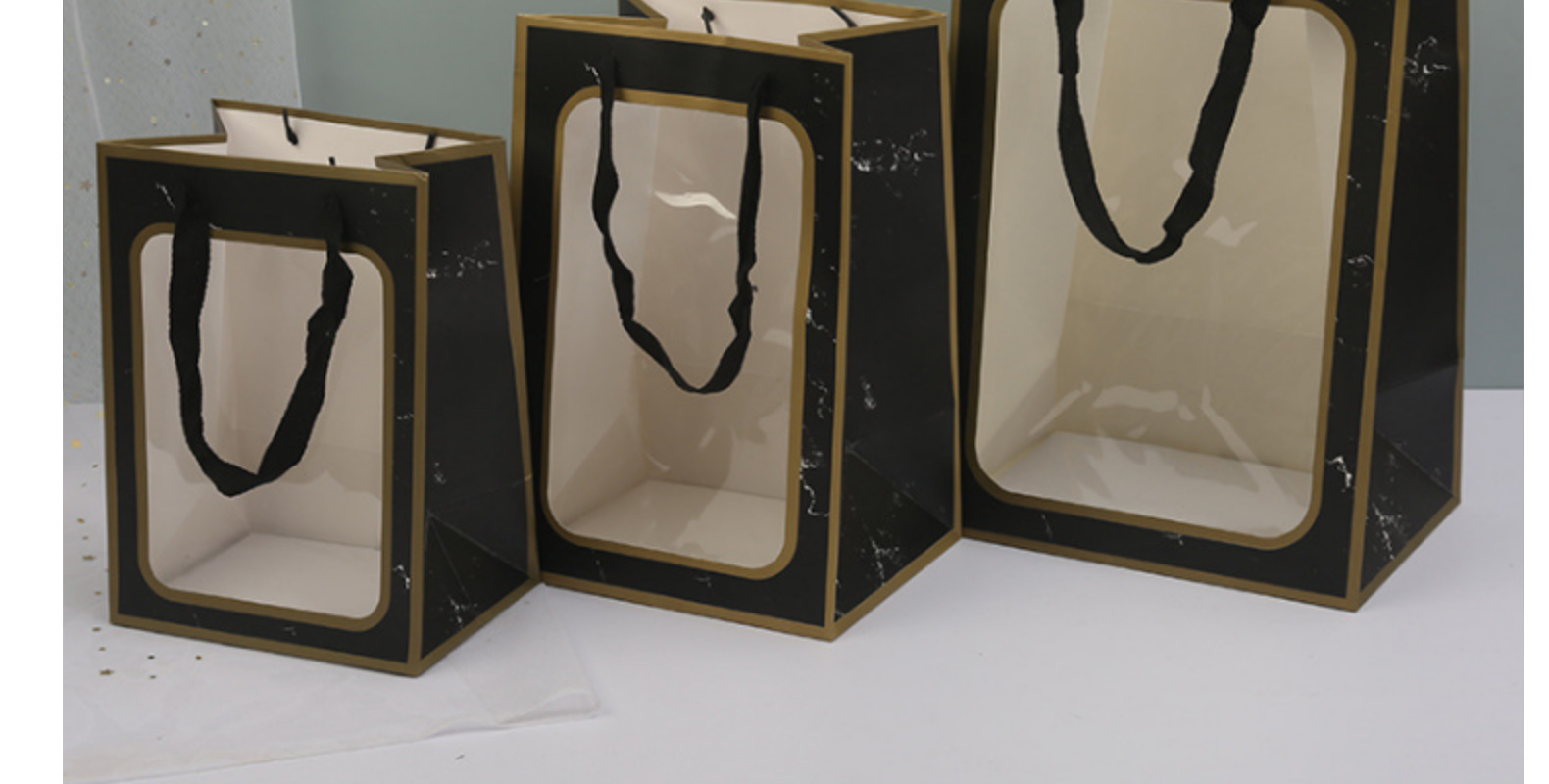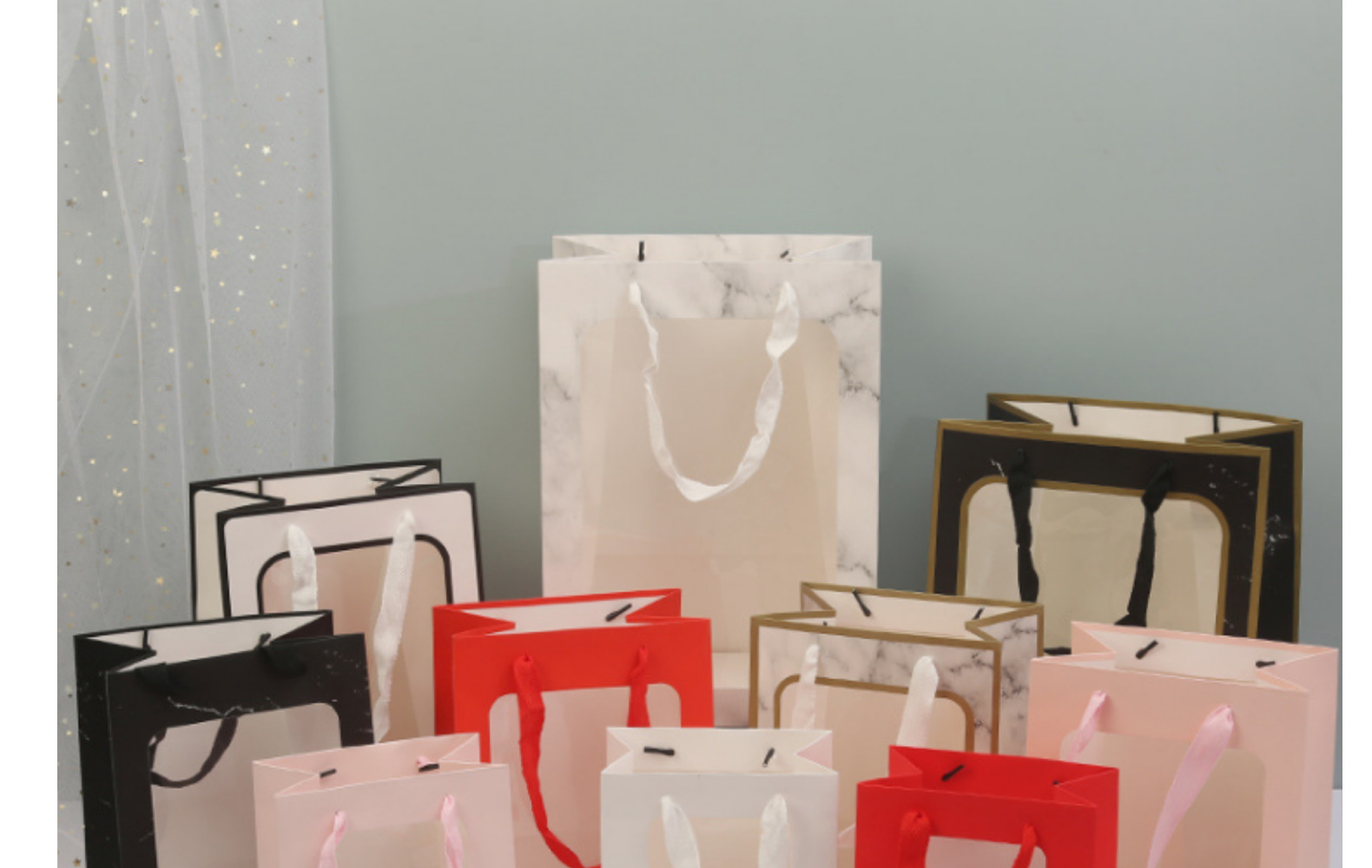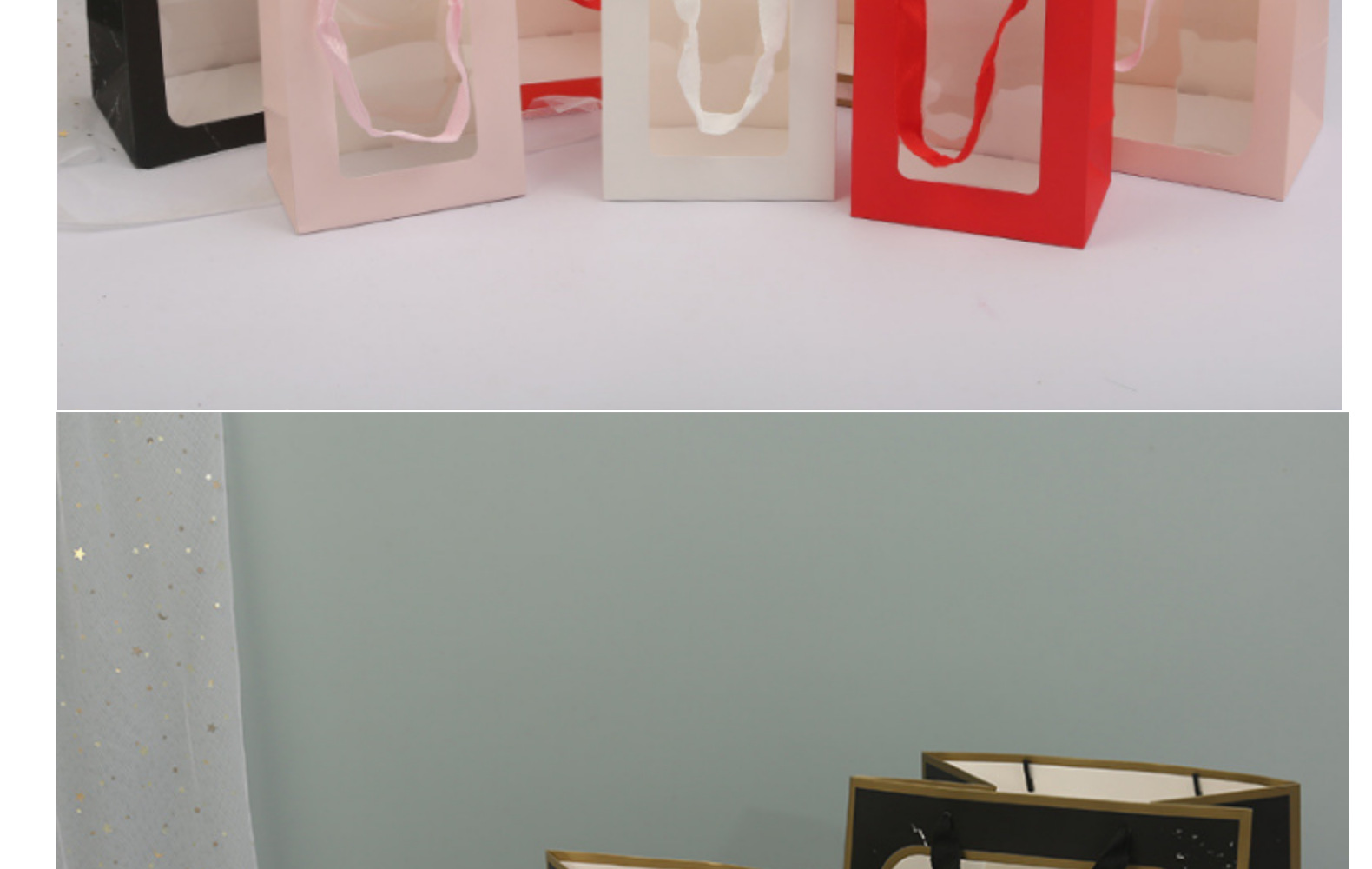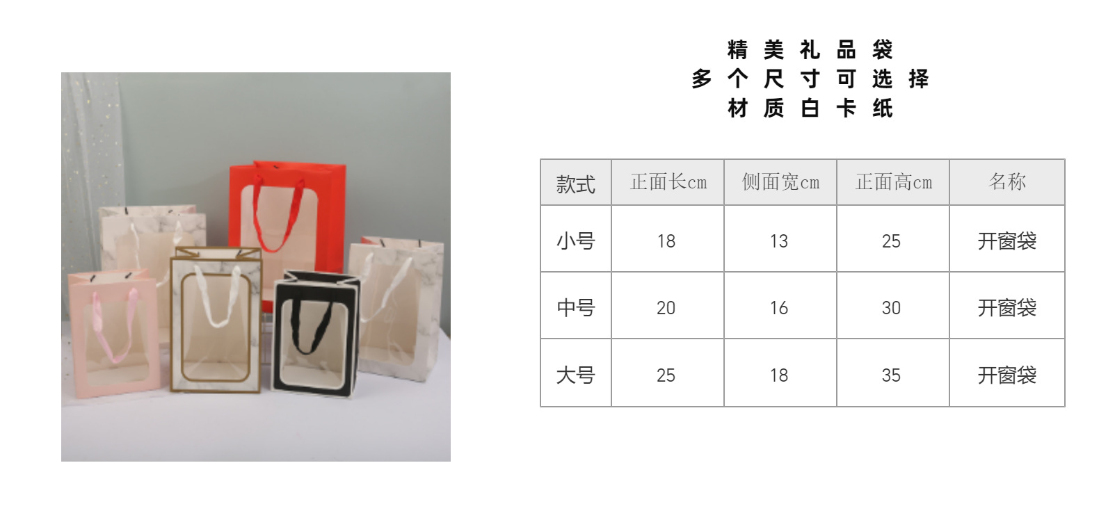 스타일 꽃 선물 포장 가방 투명 창 핸드백 발렌타인 데이 창 종이 가방 손 선물 가방