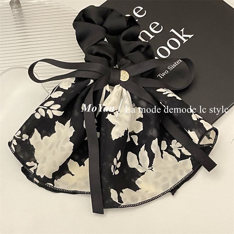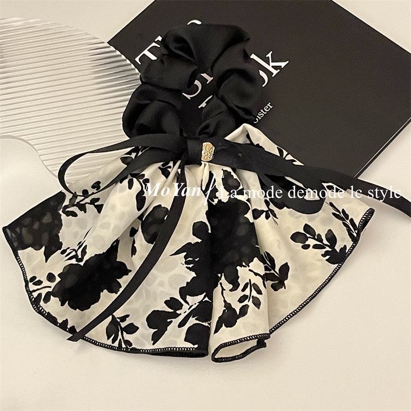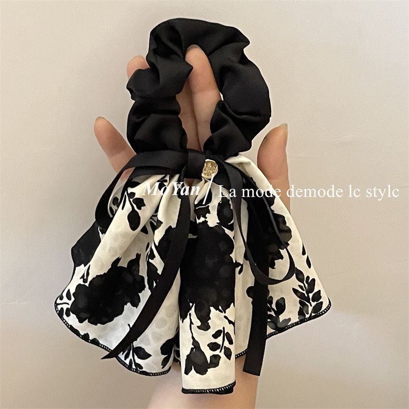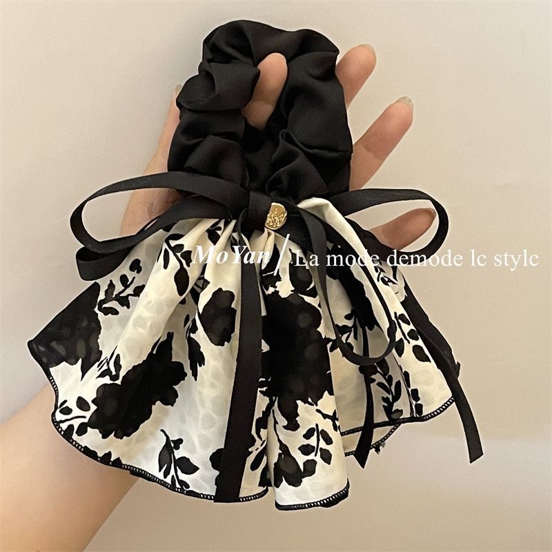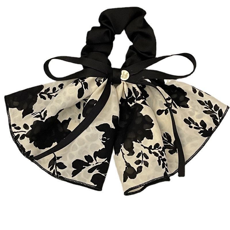 빈티지 프린트 보우 잉크 스커트 헤어 루프 헤어 로프 여성용 고급 부드러운 우아한 헤어 로프 리본 2023 New스토어 가기