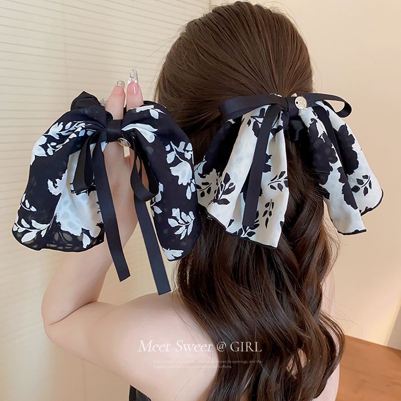 빈티지 프린트 보우 잉크 스커트 헤어 루프 헤어 로프 여성용 고급 부드러운 우아한 헤어 로프 리본 2023 New