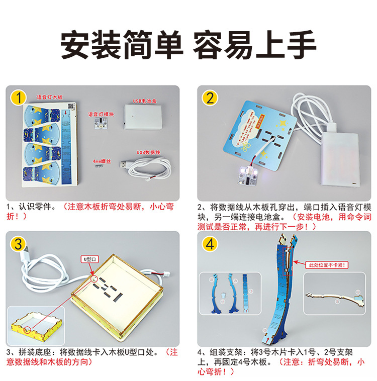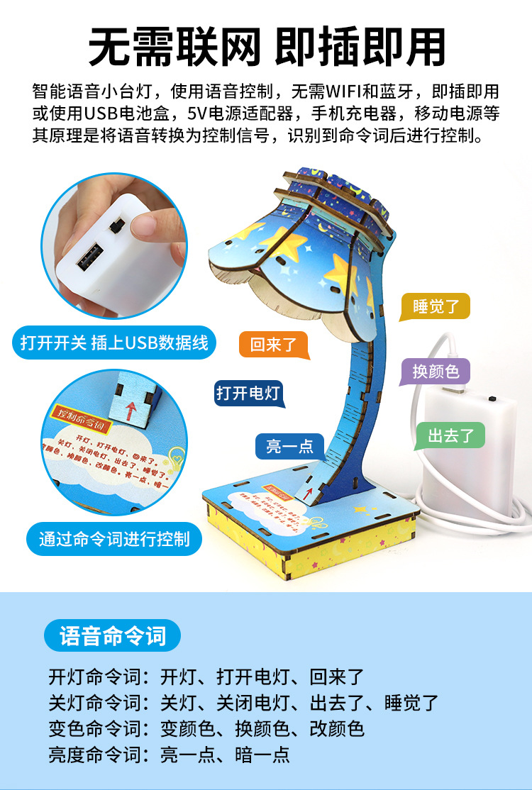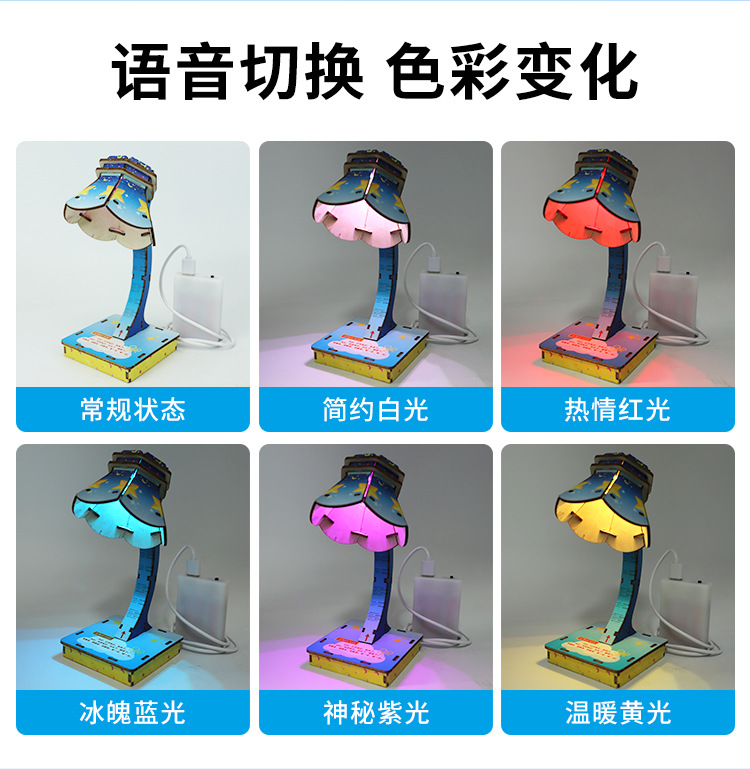과학 실험 초등학교 학생 장난감 DIY 지능형 작은 테이블 램프 음성 제어 회로 기술 작은 생산 장비 배치
