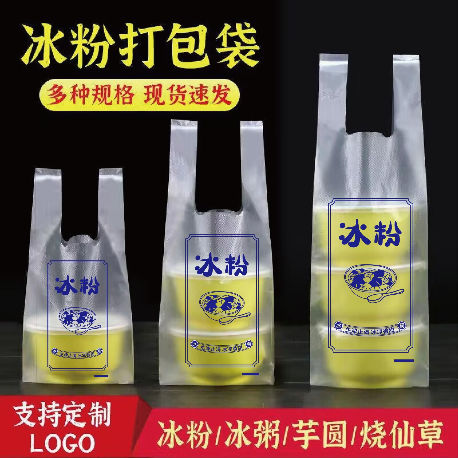 빙수 포장봉투, 타로볼, 버블티, 요거트, 일회용 원형 그릇, 과일 믹스 음식 PE 포장봉투 도매