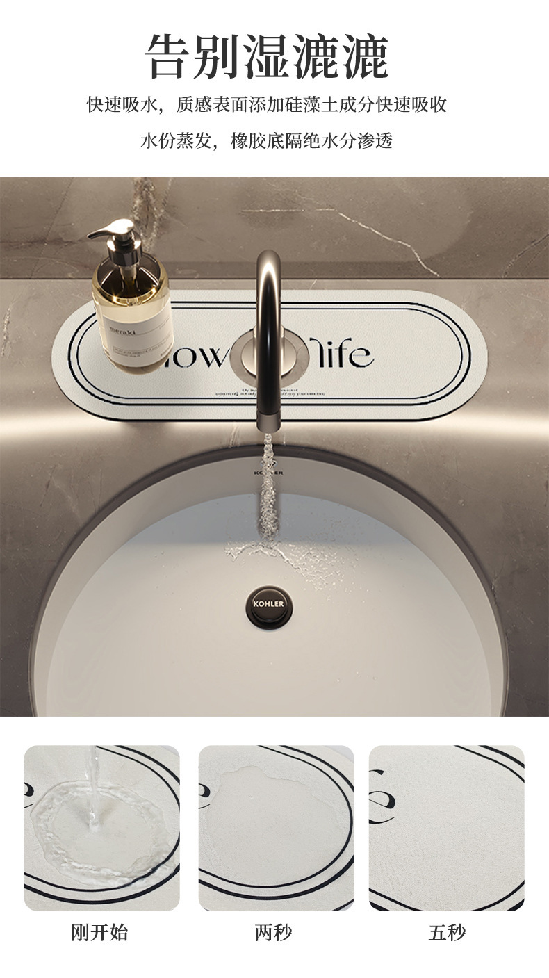 규조 진흙 수도꼭지 흡수 패드 주방 싱크대 배수 패드 방수 방수 욕실 싱크대 패드스토어 가기