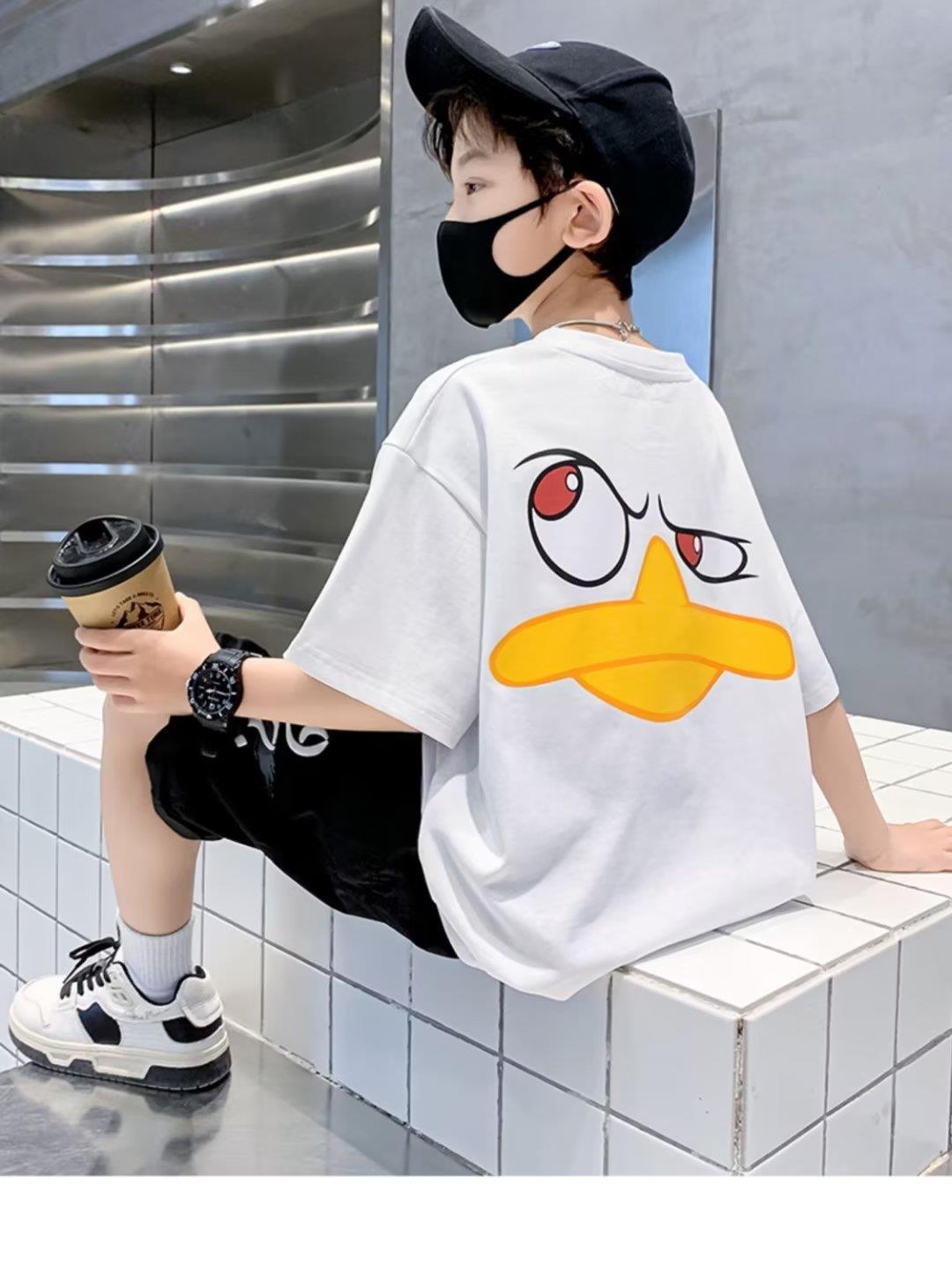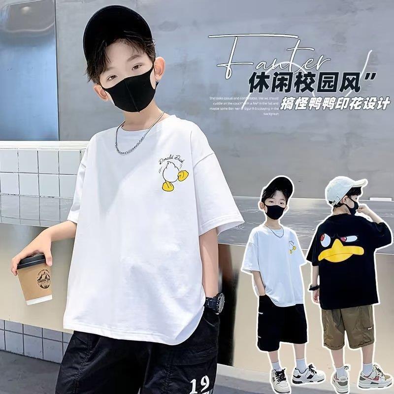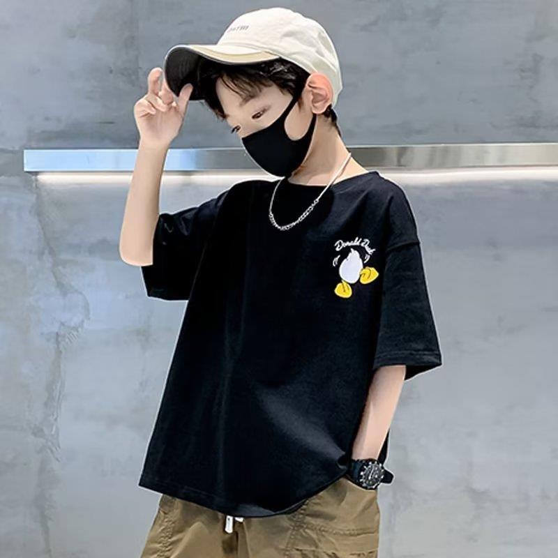 큰 어린이 옷 여름 옷 소년 어린이 옷 소년 티셔츠 반팔 2023 새로운 여름 어린이 탑 반 소매 만화스토어 가기