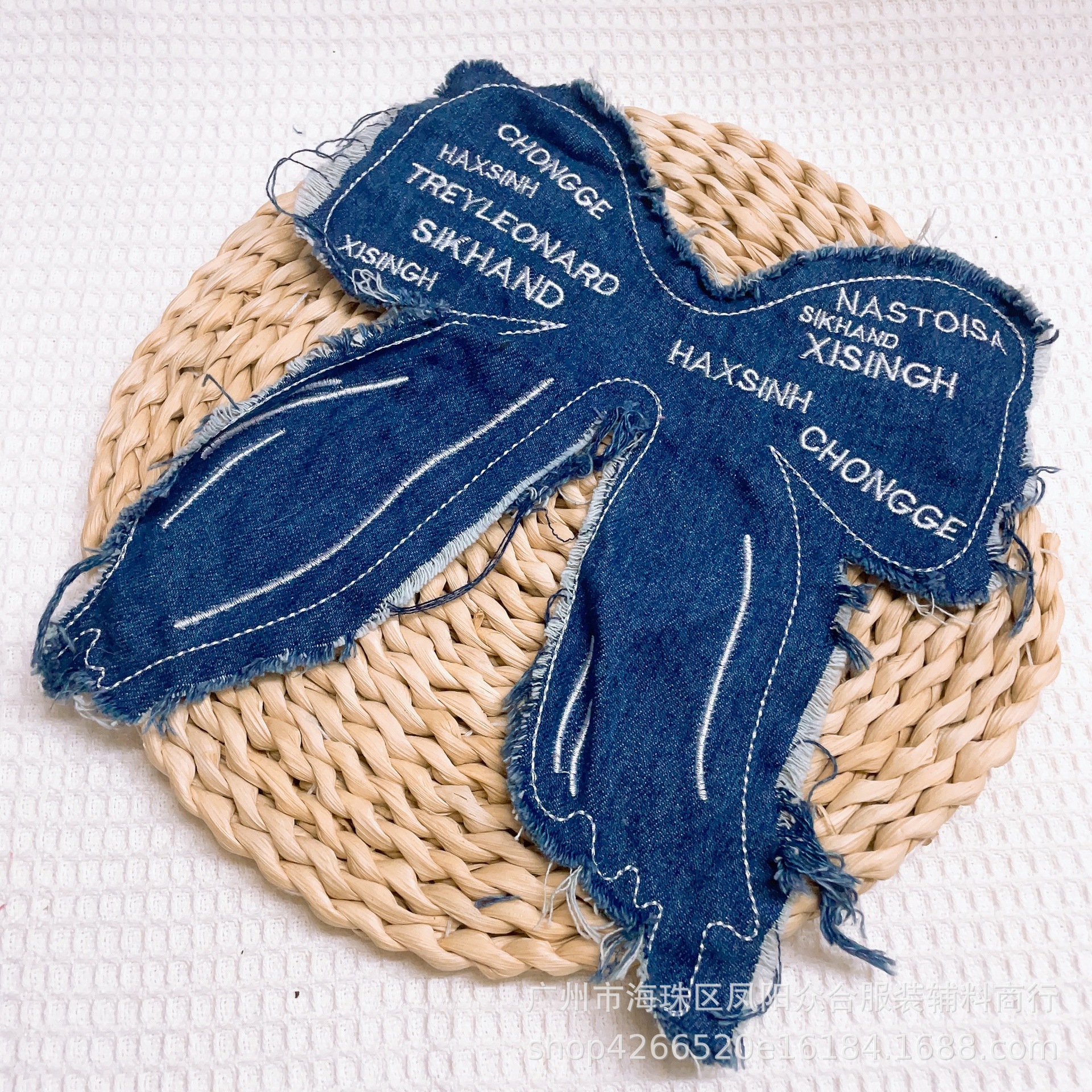 새로운 빈티지 세척 물 로즈 레드 보우 데님 자수 패치 조수 의류 조수 가방 티셔츠 장식 패치 액세서리스토어 가기