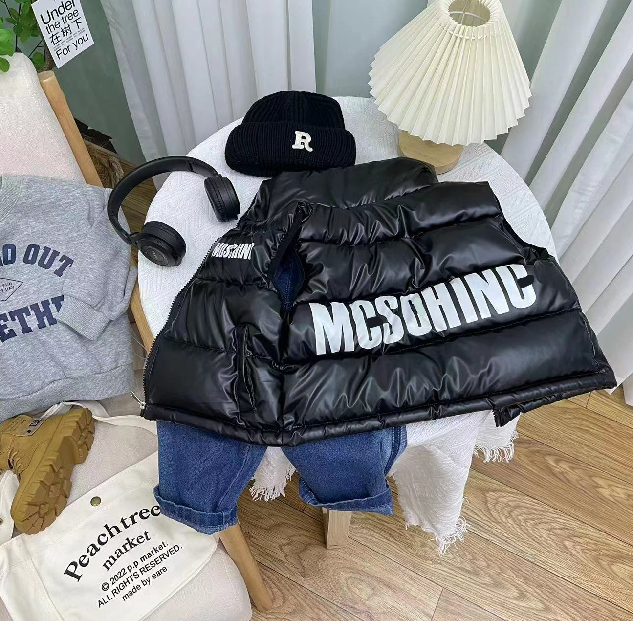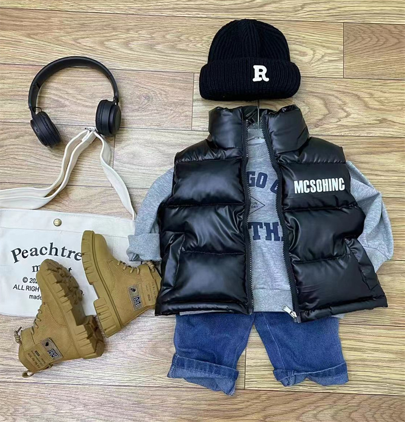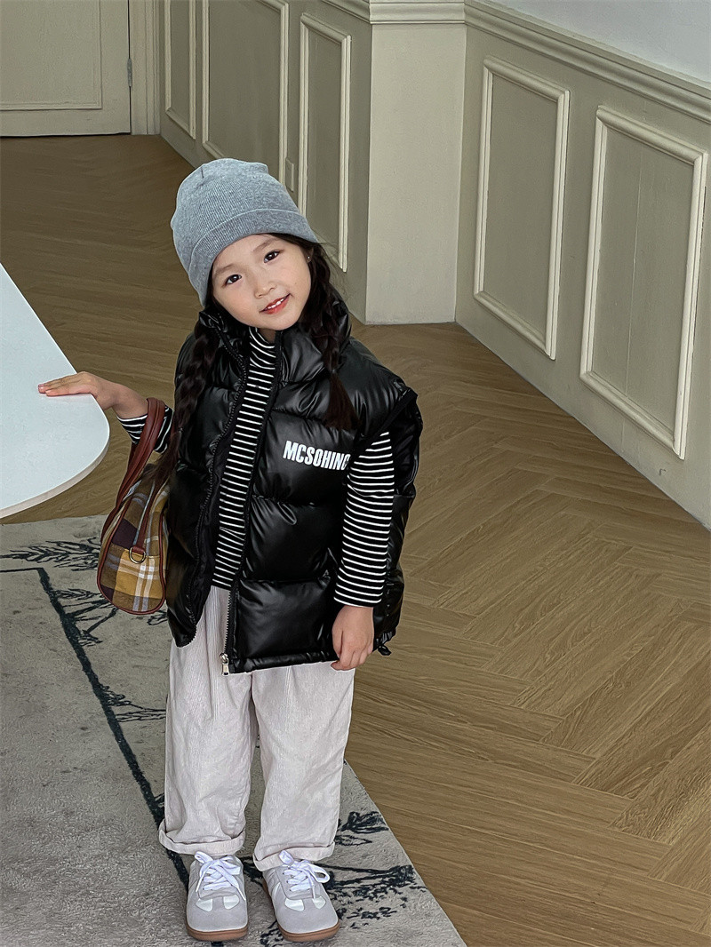 가을과 겨울 새로운 어린이 스탠드 칼라 코튼 조끼 밝은 얼굴 세탁 무료 소년 소녀 두꺼운 조끼 보물 착용 조끼 안티 시즌스토어 가기