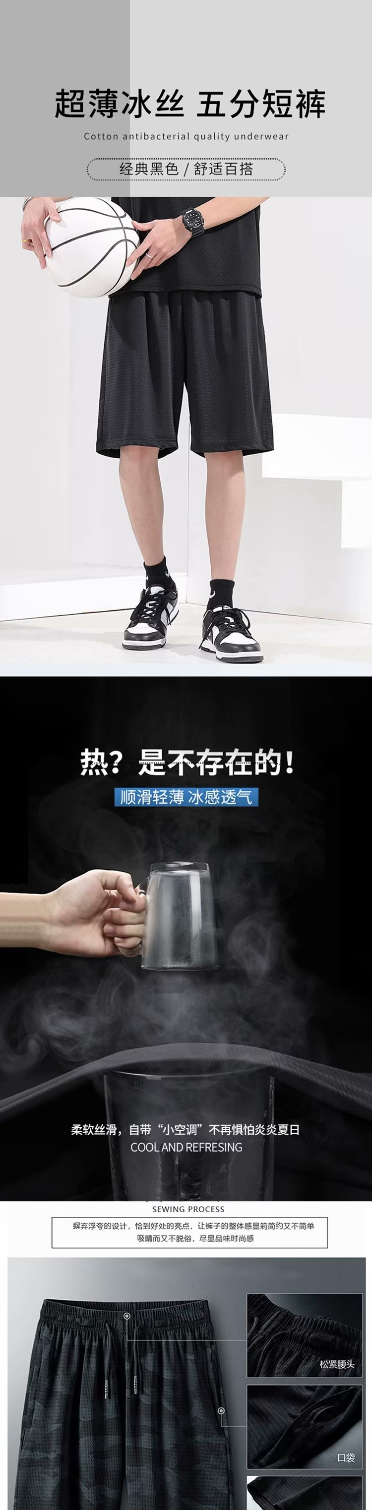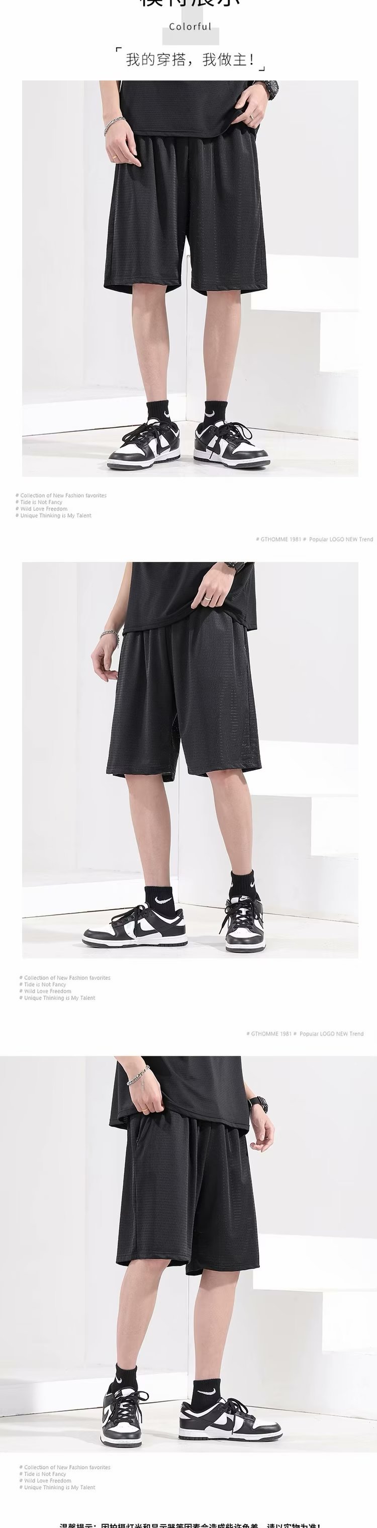 여름 얇은 얼음 실크 메쉬 5부 바지 남성용 탄성 느슨한 대형 바지 스포츠 반바지 남성용 피트니스 비치 바지스토어 가기