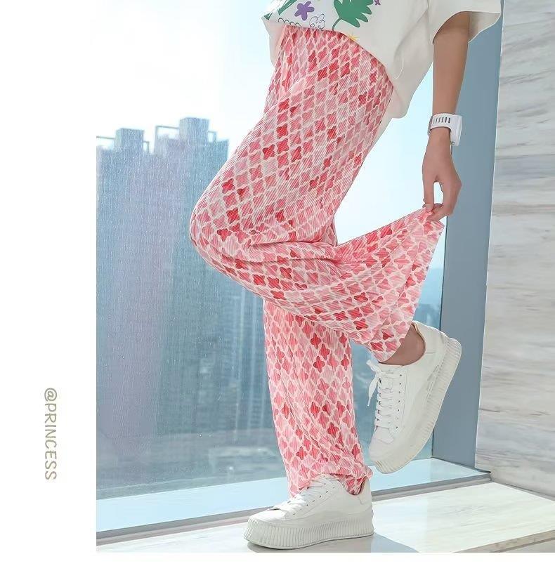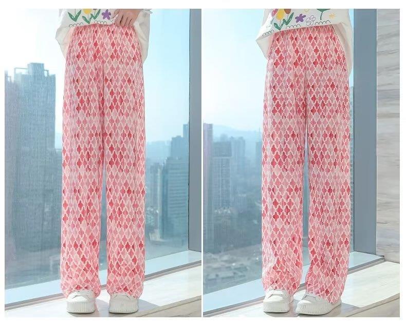 여아 와이드 레그 팬츠 여름 얇은 어린이 아이스 실크 팬츠 여아 여름 세트 서양식 큰 어린이 캐주얼 스트레이트 팬츠