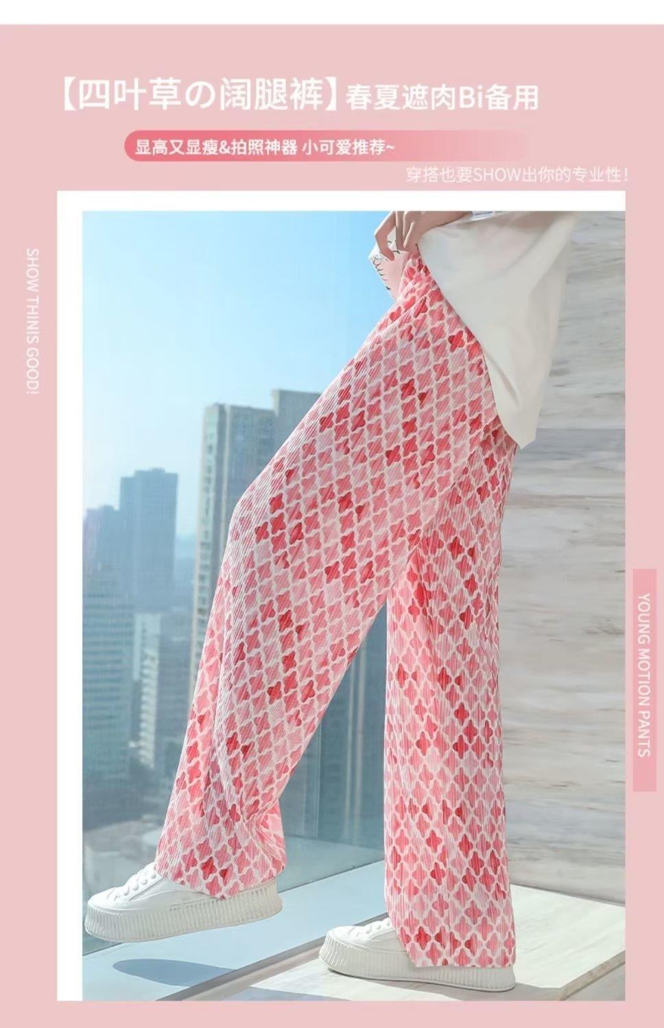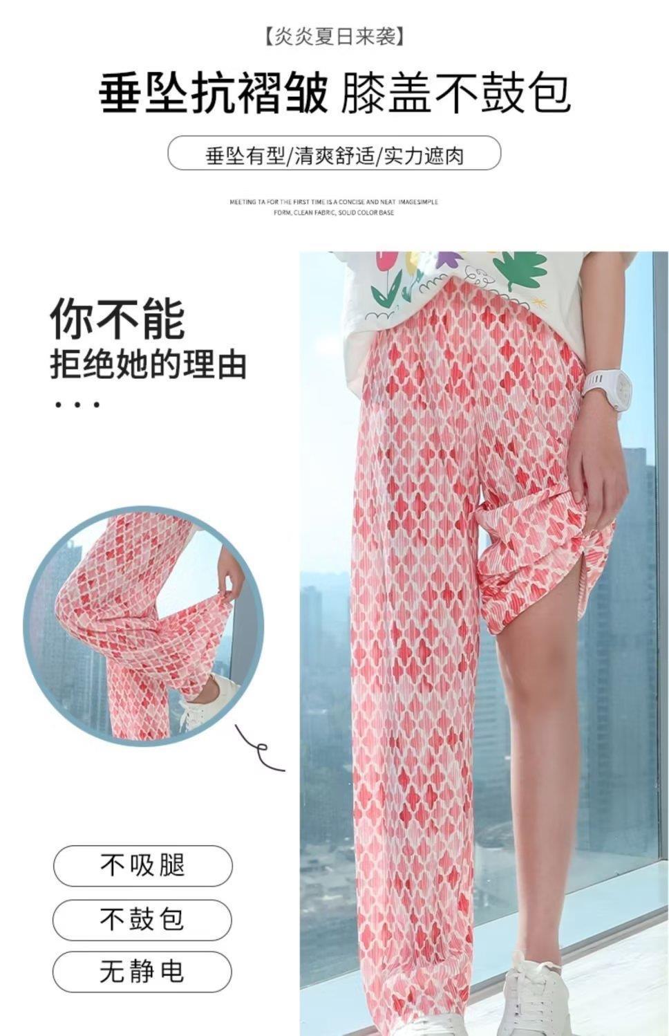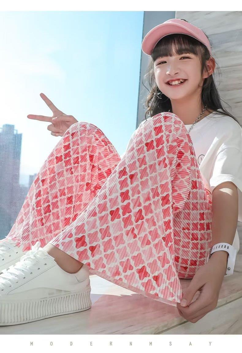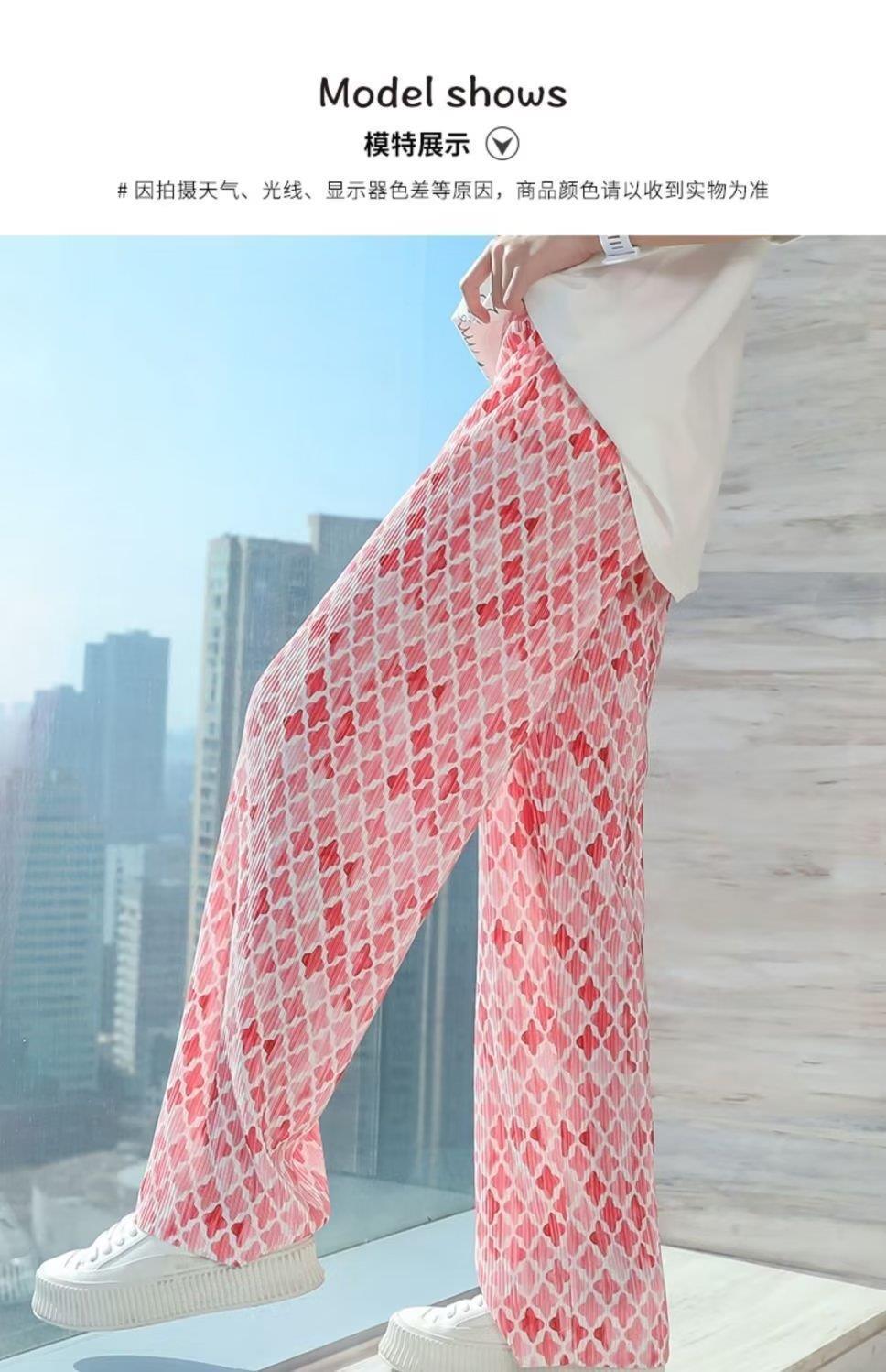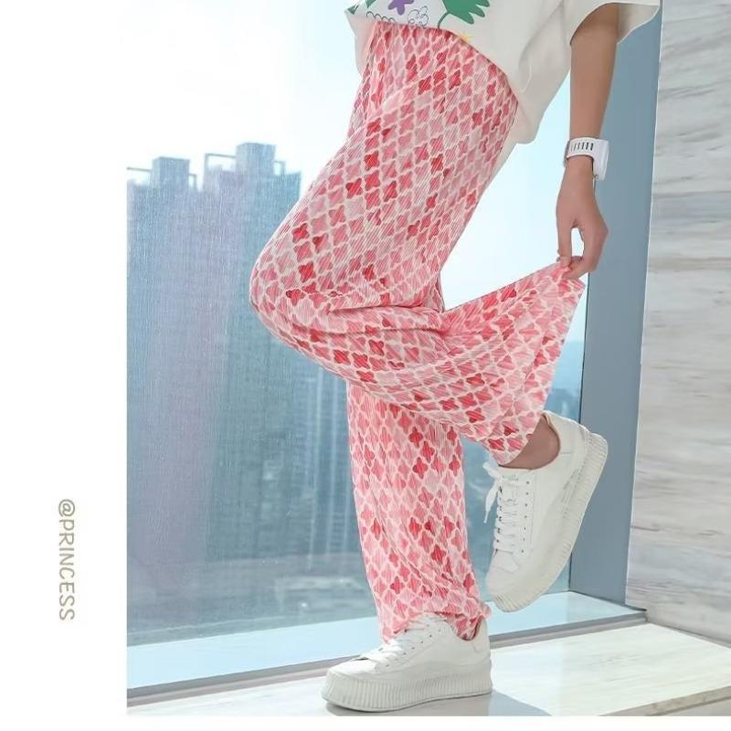 여아 와이드 레그 팬츠 여름 얇은 어린이 아이스 실크 팬츠 여아 여름 세트 서양식 큰 어린이 캐주얼 스트레이트 팬츠스토어 가기