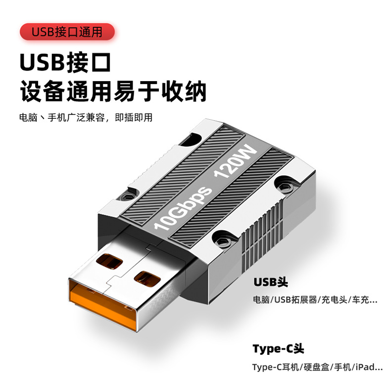 USB3.1 혁명 Type-C 암 어댑터 10Gbps 전송 120W 충전 아연 합금 소재 인터페이스 변환